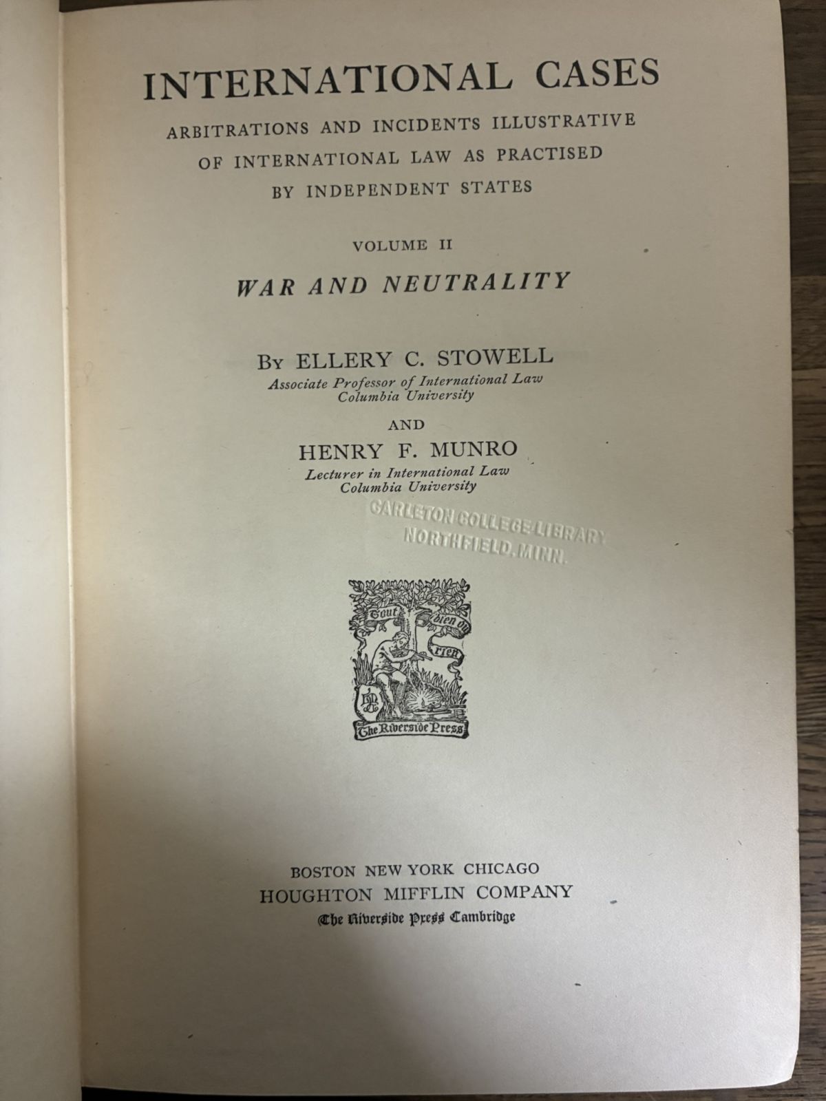 1916年 ストーウェル/マンロー『国際判例集(全2巻)』Stowell / Munro, International Cases 洋書古書 收藏