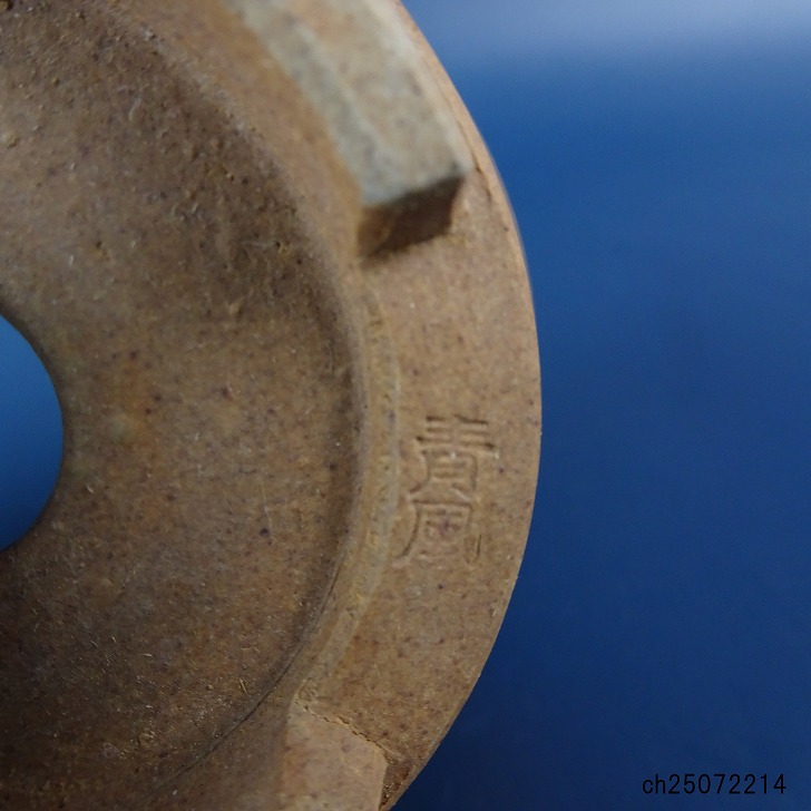 【中古】 盆栽鉢 青風 小鉢 長辺 約 8cm 丸鉢 下帯 現品 中古鉢 收藏