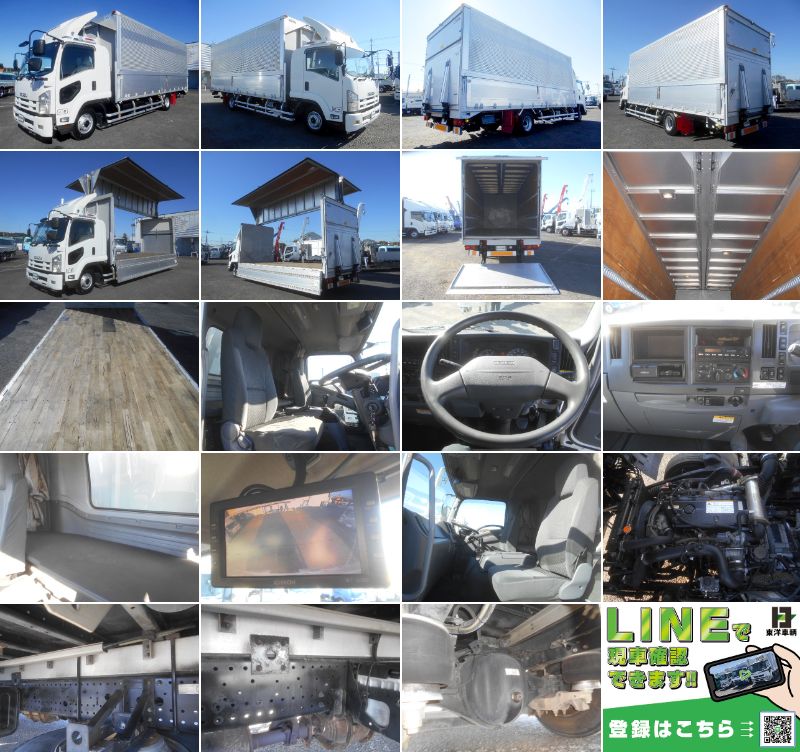 パワーゲート付アルミウイング 上物:日本フルハーフ製 ワイドボディ 後輪エアサス 積載2.55t 荷台寸法:626×239×239 荷台床:木張り アオリ開閉サポート ラッシングレール2段 内フック 日本フルハーフ製跳ね上げパワーゲート パワーゲート寸法:158×233 パワーゲート最大昇降荷重:1000kg ベッド付 走行47.1万㎞ 6速ミッション 車検付(R8/10/11) 中型免許(8t限定)対応車 排ガス適合(各都市登録&乗り入れ可) タイヤサイズ:225/80R17.5 |