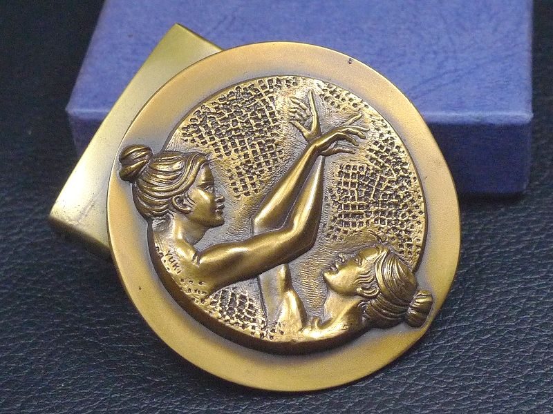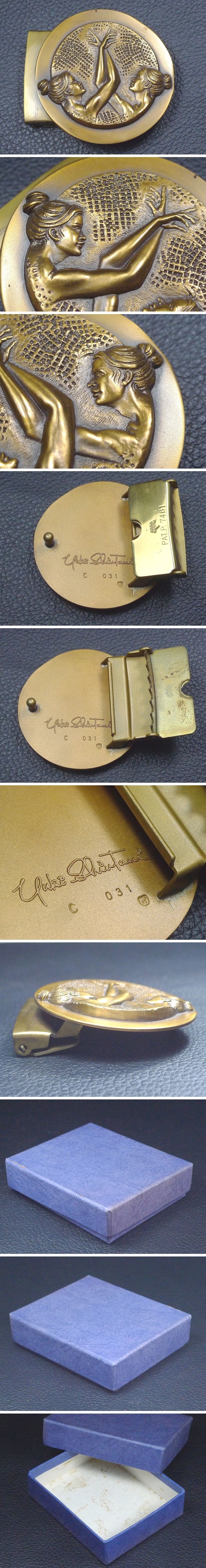 60TR119★新谷琇紀作 ベルトバックル 箱付き 直径約5.2 丸型 具象彫刻 女性 裸婦像 收藏
