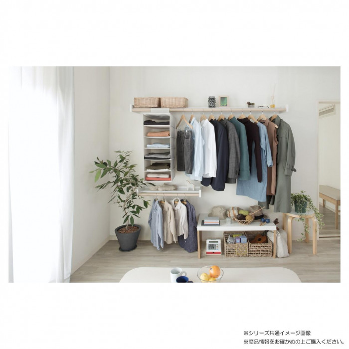| ウォーリーは物干しから生まれたオープンクローゼットタイプの多目的シェルフです。衣類を掛けるだけでなく、シェルフに小物を置いて収納することができます。窓際では物干しとして、リビングや玄関などではインテリアとして、様々なシーンで暮らしに溶け込みます。設置場所や用途、空間の雰囲気に合わせてお使いください。 【注意事項】 ・取り付けの際は必ず取付説明書をよくお読みの上、手順に従って施工してください。 ・ブラケットは必ず下地に取り付けてください。なお、取り付けには「下地探し」や「ドリル」など、専用の工具が必要になります。 ・本製品は、室内専用です。室外には取り付けないでください。 ・本体をブラケットにしっかりとはめ込んでください。 ・高い位置に取り付ける際は、頭をぶつけないように注意してください。 ・パイプ、シェルフそれぞれに10kg以上の荷重をかけないでください。製品や壁面の破損原因になります。 ・パイプには絶対にぶら下がらないでください。製品破損やケガの原因になります。 ・下から強い衝撃を与えないでください。本体がブラケットから外れて、落下する恐れがあります。 ・分解・修理・改造は行わないでください。 |