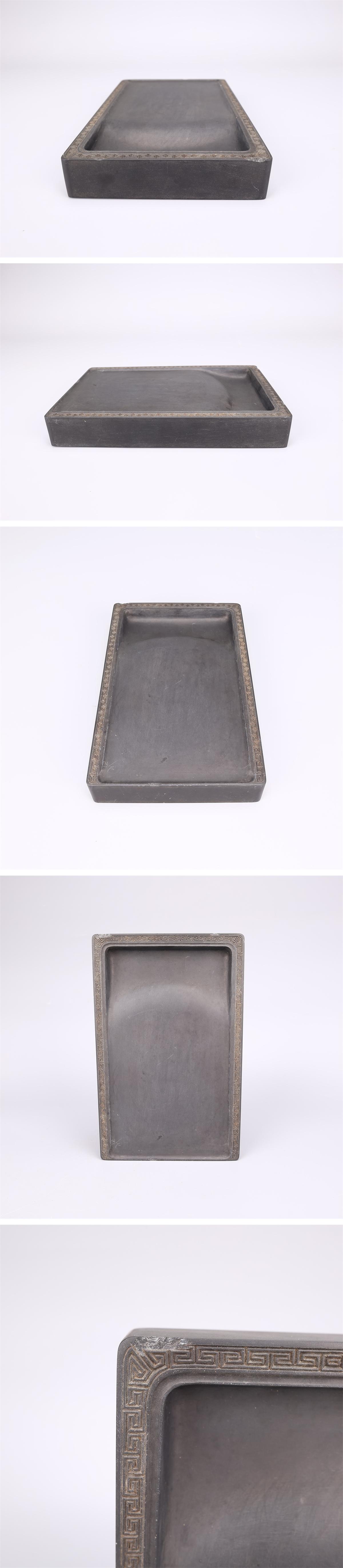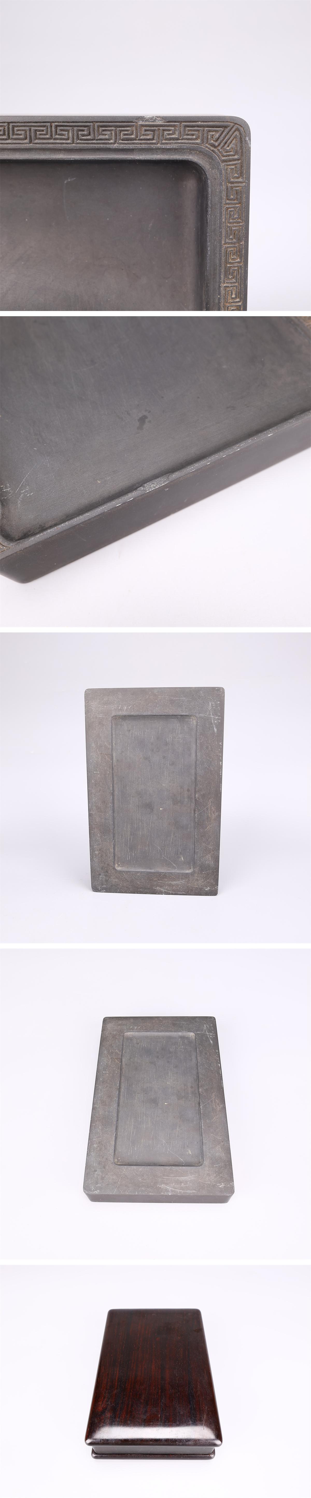 【吉】BA981 唐物 【天然端渓石製】 書道具 老坑 雷紋彫刻 端渓硯 幅20×12.2㎝ 重1831g/木蓋付 時代のホツあり! 收藏