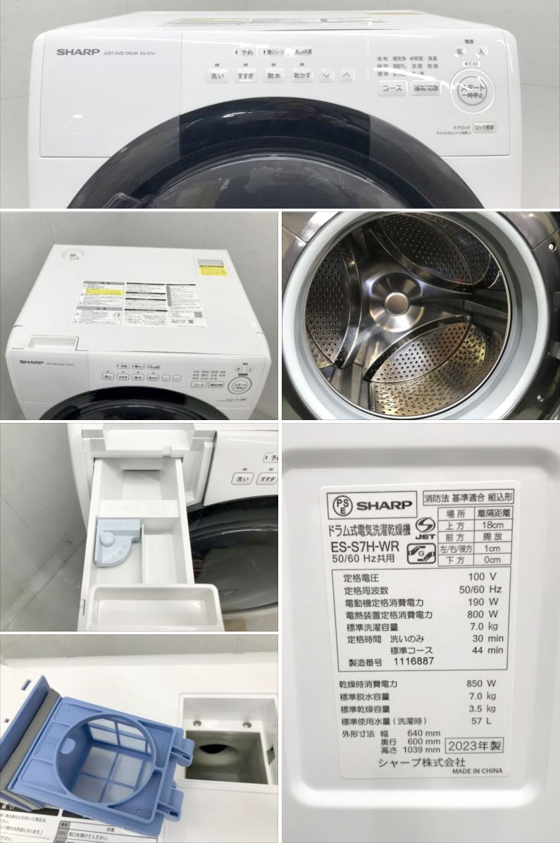 E1585YO 90日保証!【美品】ドラム式洗濯乾燥機 洗7kg/乾3.5kg 右開き シャープ ES-S7H-WR 23年製 家電 洗乾 洗濯機 收藏