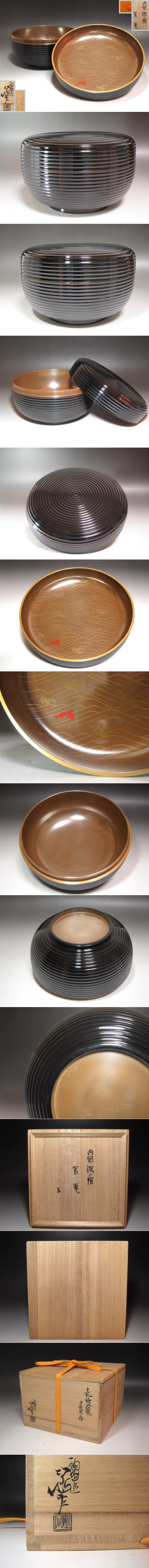 【川端近左】 川端家は滋賀県の出身 京都で油屋を営んでいたが、家業の傍らで俳諧や日本画を嗜む趣味人であったとされており 一方ならぬ興味を持っていた漆芸がいつしか家業になったと伝えられている。 寸法・状態 約直径21.1㎝×高さ13㎝ 若干の誤差があることをご了承下さい。 ※損傷を防ぐため、お手入れしていない状態で撮影しております。 汚れホコリ等ございますのでご購入後にお手入れされることをお勧めします。 中古品になりますのでご了承下さい。 | |||
