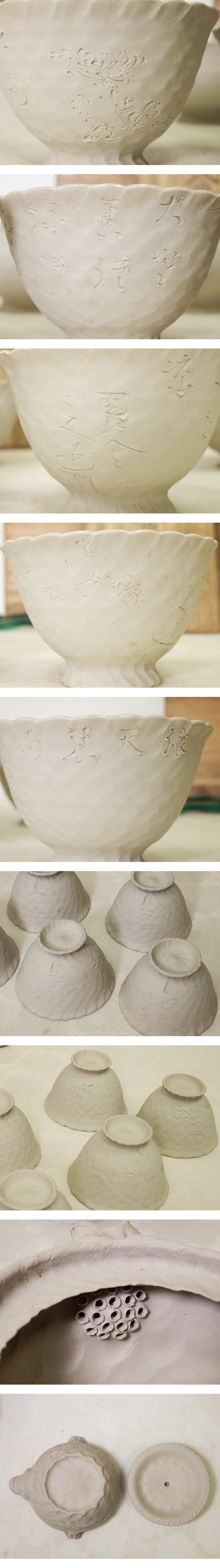 ご覧頂き誠にありがとうございます。 トラブル回避の為、予めプロフィールをご覧頂いた上でお取引をお願い致します。 【商品内容】 圓相舎 小川半助 作 萬古焼 漢文図 煎茶碗 5客 宝瓶 湯冷し 急須 湯呑 煎茶器セット 共箱 手捻 茶道具 明治期 名工 万古焼 【商品詳細】 未使用保管品、ヨゴれあり 半助はろくろを使わず手で成形する「手捻り」を得意とし、山本利助や伊藤豊助とともに「四日市の三助」として明治期に活躍。 四日市市でたばこ屋を営み「煙草(えんそう)」の読みにちなんで「円相舎」と号した。 ■商品サイズ 湯呑 径 約7.5㎝ 高 約5㎝ 急須 幅 約10㎝ 高 約6.5㎝ 湯冷し 径 約10.5㎝ 高 約5㎝