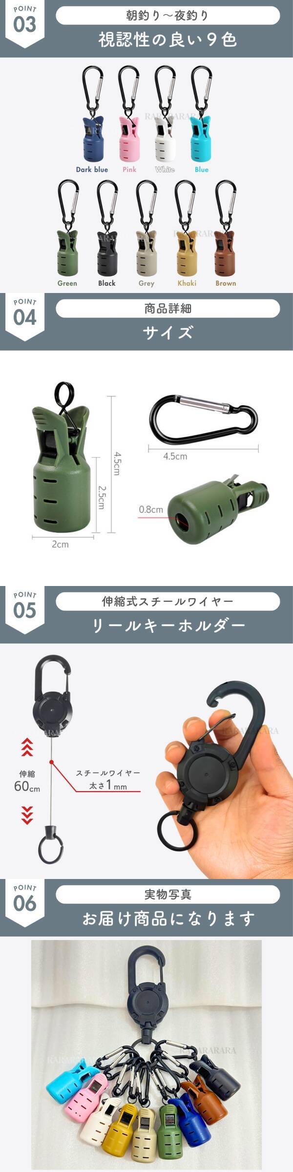 ・リール付きカラビナ × 1個(ブラック)