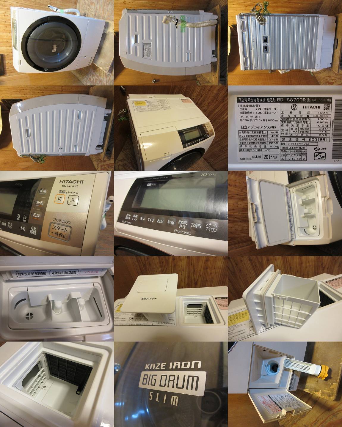 D1562★HITACHI■日立電気洗濯乾燥機■BD-S8700R■2015年製■10.0kg/6.0kg■右開き■中古品 收藏