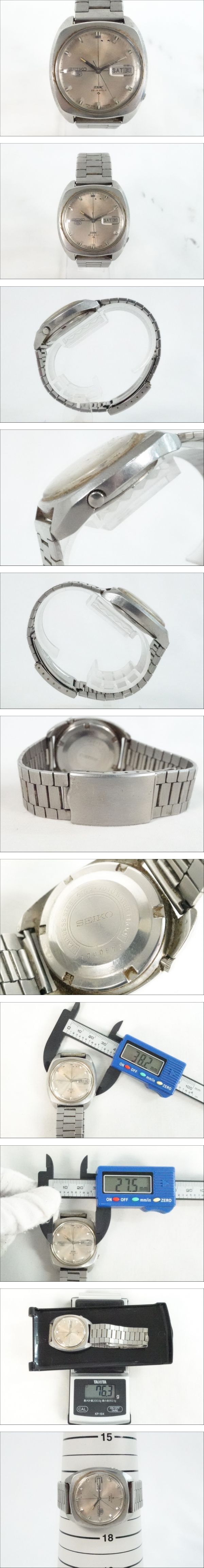 ブランド名:SEIKO 商品名:腕時計 型番:7700975 ベルト:社外 腕周り:画像にてご確認下さい。 総重量:画像にてご確認下さい。 サイズ:画像にてご確認下さい。 ムーブメント:自動巻き 付属品:無し 動作:稼働している確認ができました。 リューズを回して時間調整確認できました。 リューズを24時間回して日付の変更は確認できました。 その他の操作は未確認となります。 長時間の動作確認は行っていないため、日差含め正常な動作かは分かりかねます。 ※あくまでも検品時の動作となりますので予めご了承下さい。 状態:譲り受けた商品の為、購入時期や使用頻度など詳細は分かりかねます。 中古品の為、フェイスや外観に傷やスレ、汚れ、サビが見受けられます。 曜日の変更ができません。 素人の為、ご質問いただいても回答できない場合がございますが、 画像を追加致しますので、欲しい写真があった場合ご質問頂ければと思います。 神経質な方のご入札はお控え下さい。目視でのご確認となります。 商品の状態に関しては画像にてご判断下さい。 ※オーバーホール歴は不明でございます。 ※裏蓋を外した画像がない商品は、裏蓋を外して内部の確認は出来ておりません。 ID:0011702026-2121-05 弊社はインボイス登録事業者です。 登録番号:T8370001039877 ※※入札前に必ずお読みください※※ 説明文をよくお読みの上ご入札下さい。 画像に写っているものが全てになります。 商品の重さを量っているものに関しては多少の誤差がありますので、ご理解下さい。 商品の状態に関してはご自身でご判断の上、ご入札下さい。 あくまでも主観に基づく感想です。状態判断は画像にてお願い致します。 商品に対しどちらの情報が欲しいか分かりかねる部分もございますので、落札前にご質問頂ければと思います。 中古品の為、神経質な方のご入札はお控え下さい。 ご入札後の入札取り消しは出来かねます。 専門知識がなく、ご質問いただいても回答できない場合がありますが 気になる点がある方は入札前にご質問下さい。 素人による検品の為、見落としている場合もございます。 ご了承下さい。 ノークレーム・ノーリターンでお願いします。 | |||