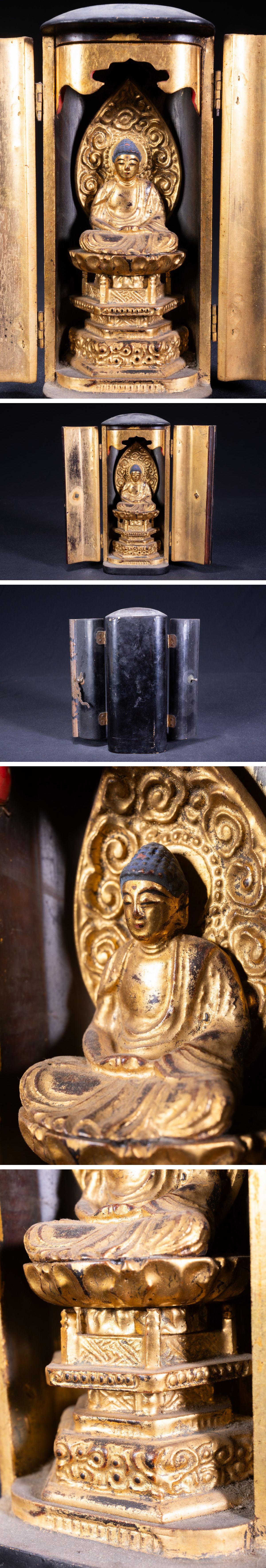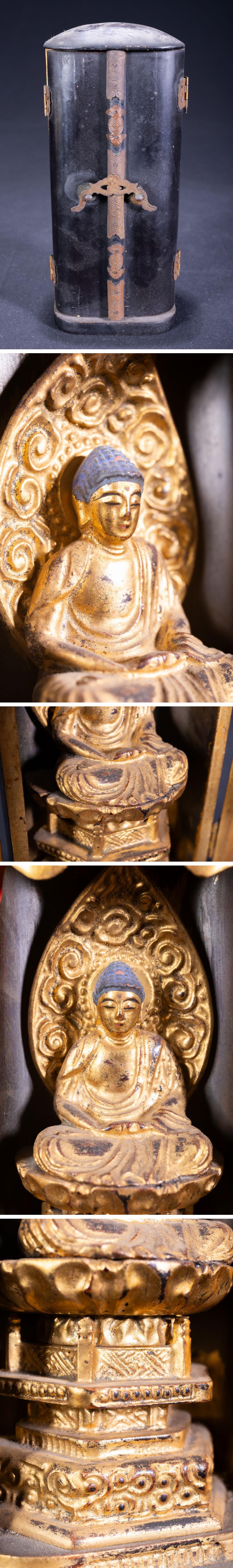 【珍品堂】1円から 仏教美術 仏像 金彩 木彫 阿弥陀如来像 仏壇仏具 置物 アンティーク 時代物 古美術 骨董品 H16.3cm N-A1C-HM1 收藏
