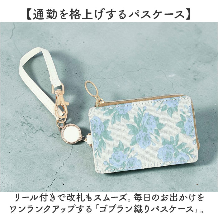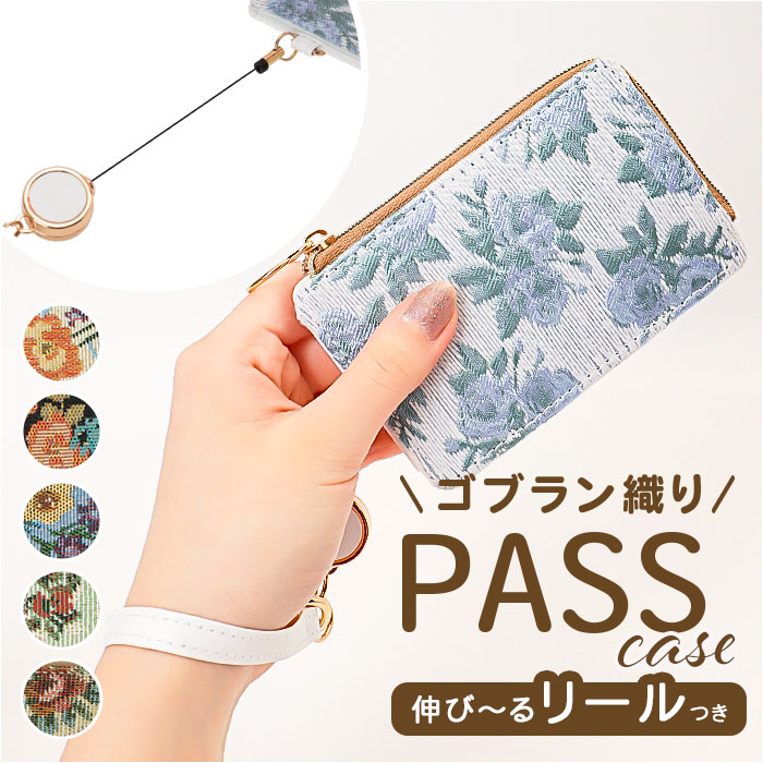 ☆ GPC0057.B ☆ ゴブラン織りパスケース パスケース おしゃれ 定期入れ リール付きパスケース リール付き ICカード 通勤 通学 落下防止 收藏
