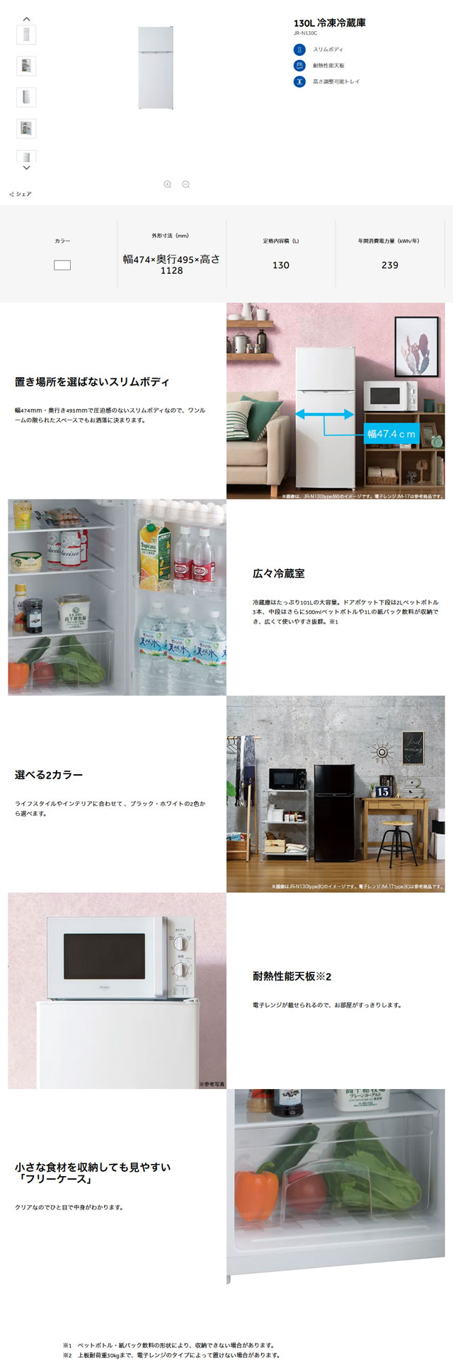 | メーカー・型式 | ハイアール / JR-N130C(W) | |