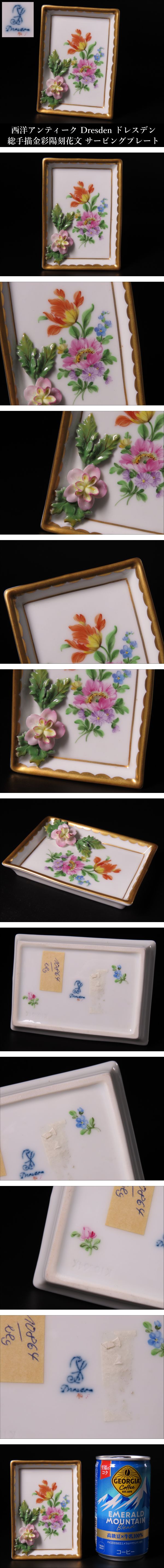 【ONES】西洋アンティーク Dresden ドレスデン 総手描金彩陽刻花文 サービングプレート 飾皿 西洋美術 古美術品 收藏