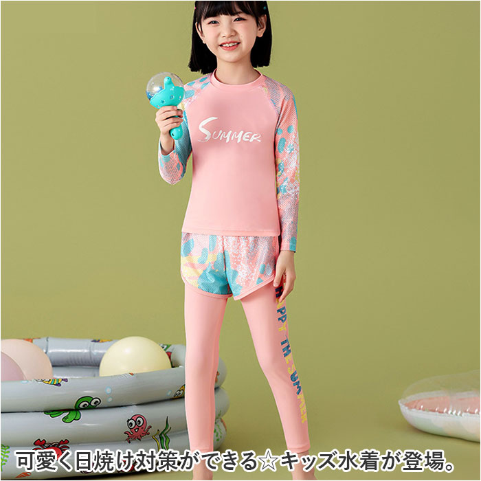 ☆ パープル ☆ 4XLサイズ ☆ キッズ水着 naksw4000 子供 水着 女の子 ジュニア 長袖 ショートパンツ 半ズボン 長ズボン ラッシュガード 收藏