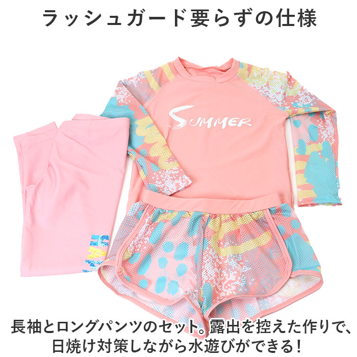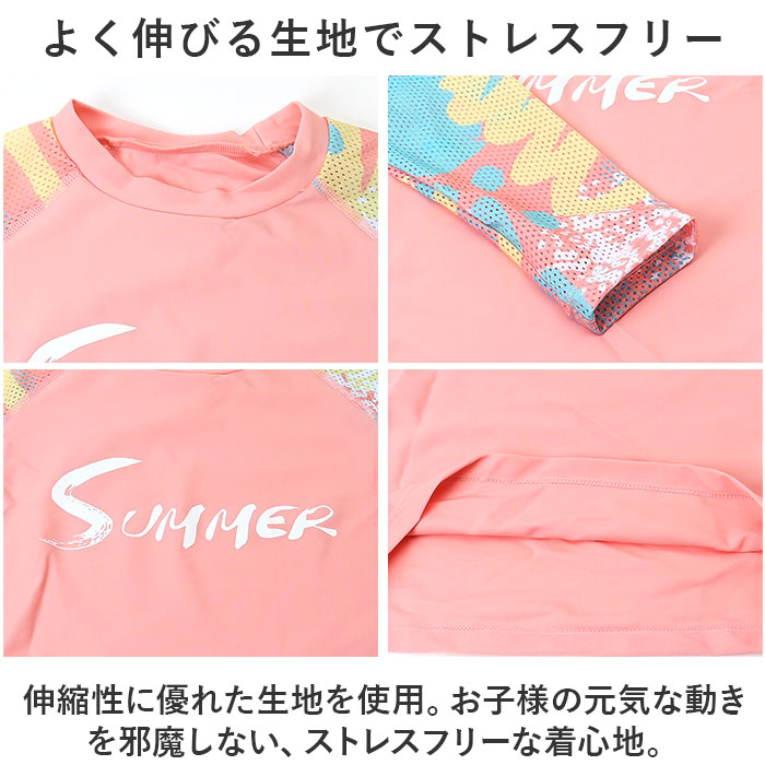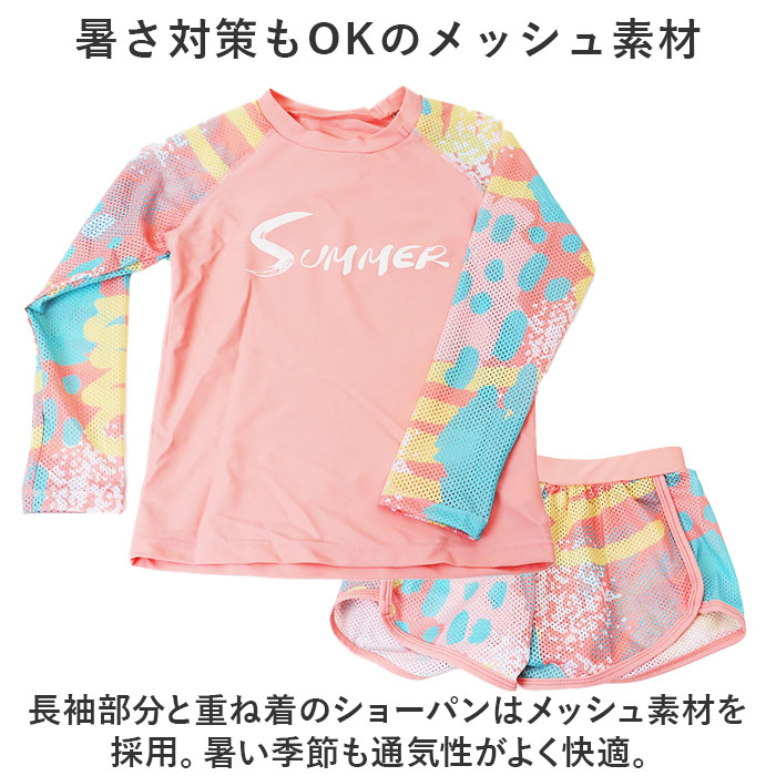 | 商品説明 | ・・可愛く日焼け対策ができる☆キッズ水着が登場。 ・【ラッシュガード要らずの仕様】 ・長袖とロングパンツのセット。露出を控えた作りで、日焼け対策しながら水遊びができる! ・【暑さ対策もOKのメッシュ素材】 ・長袖部分と重ね着のショーパンはメッシュ素材を採用。暑い季節も通気性がよく快適。 ・【よく伸びる生地でストレスフリー】 ・伸縮性に優れた生地を使用。お子様の元気な動きを邪魔しない、ストレスフリーな着心地。 ・【機能性だけでなく可愛さも◎】 ・スポーティだけど、可愛さも大切にしたデザイン☆おしゃれな女の子も納得のキュートさ。 ・【速乾性でお手入れもラクラク】 ・速乾性のあるサラっとした生地。乾きやすいので、お洗濯が簡単!ママパパもラクチン。 ・【幅広いシーンで使えるデザイン】 ・リゾートやアウトドアはもちろん、スイミングや学校の授業など、幅広く使えるスポーティさ。 ・【姉妹やお友達とおそろいコーデ☆】 ・サイズバリエーションが豊富なので、姉妹やお友達とおそろいコーデが楽しめる♪ |
