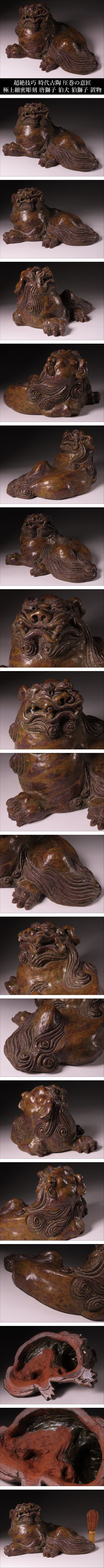 | Lot.20251107SW251104R2 ※ご入札いただいた時点で下記記載事項全てにご了承いただいたものとさせていただきます。 ※商品タイトルは当方判断に基づき記載しております。また単にキーワードとして記載している場合もございますので予めご了承ください。 【ONE'S】超絶技巧 圧巻の意匠 時代古陶 唐獅子 極上細密彫刻 狛犬 狛獅子 獅子飾 置物 幅27cm 古備前 古瀬戸 古美術品 なかなかお目にかかることのないお品物をこの一期一会のご機会にぜひ。 【サイズ】 高さ(H):約14cm 横幅(W):約27cm 奥行(D):約21cm 【重量】 約2.05kg ※当方が測ったものですので、若干の誤差がある場合がございます。 【商品状態】 掲載画像をご覧下さい。 年代を考慮致しますと状態の良いお品物であり、今後も末永くご鑑賞いただけるお品物でございます。 あくまでも年代物かつ一度人の手に渡っているお品物のため、傷、汚れ、変色、経年による劣化等があるものとお考えいただき、神経質な方のご入札はお控えください。 PC上の画像と商品の色目が若干異なる場合がございます。 説明文に記載のある品物や写真に写っているもの以外は基本的に付属致しておりません。 落札後のトラブルを避ける為にも、説明文および画像をよくご覧になってから、ご入札のほどよろしくお願い致します。 商品状態の記載に関してはあくまでも当方判断基準となっております。 状態等の詳細は写真をご確認いただき購入者各自のご判断にてご入札ください。 | |||