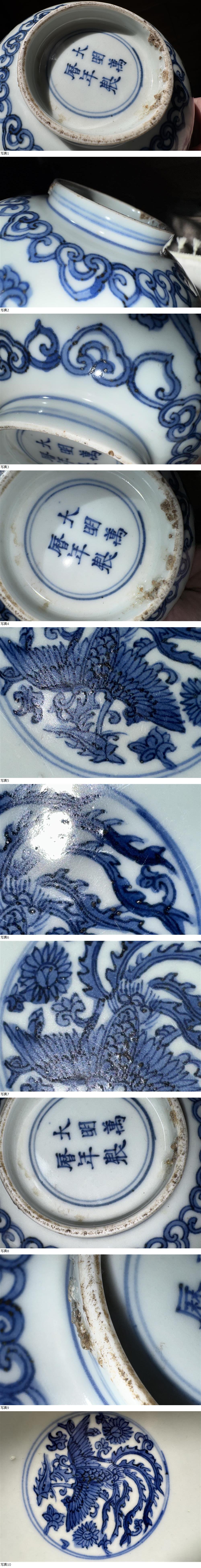 | 大明萬暦年製 底款 青花染付対頭鳳紋 碗 |