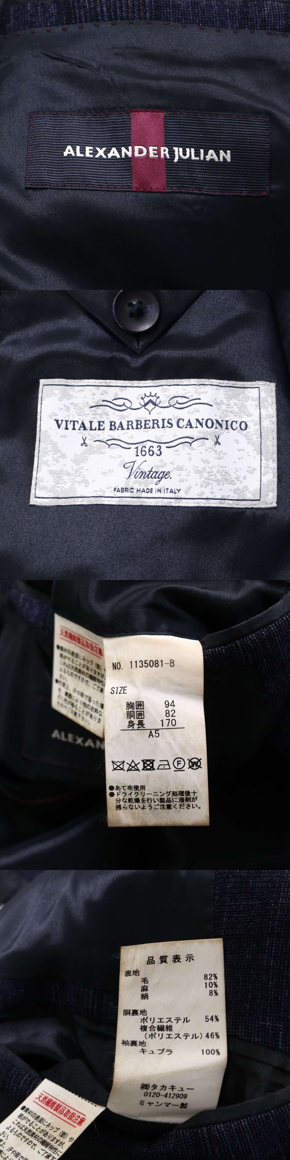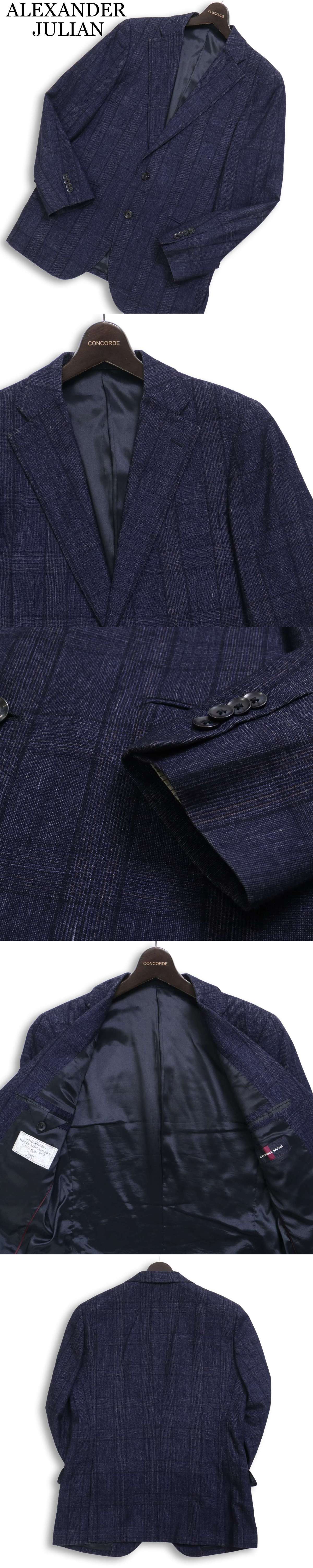 ALEXANDER JULIAN アレキサンダージュリアン カノニコ生地 ウール★ チェック テーラード ジャケット Sz.A5 メンズ 紺 收藏