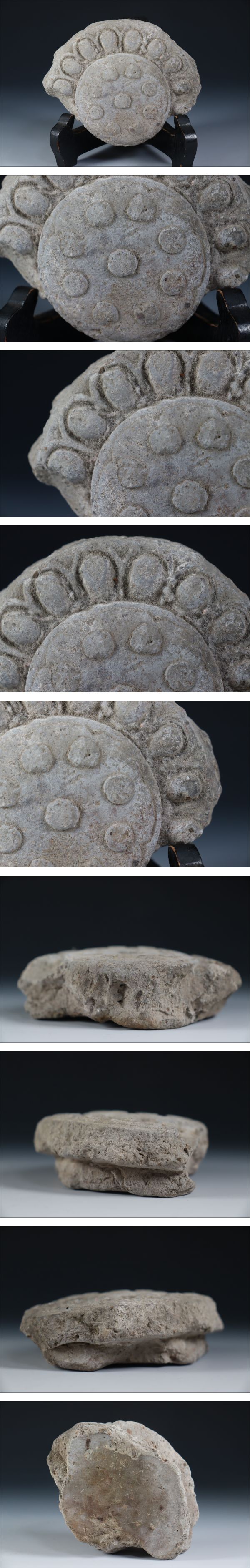 | 商品説明 | 商品名:蔵出し品 時代 古瓦 軒丸瓦 付属品:なし。 サイズ:直径11,4cm、厚み3,2cm。 状態:参考品になります。 |