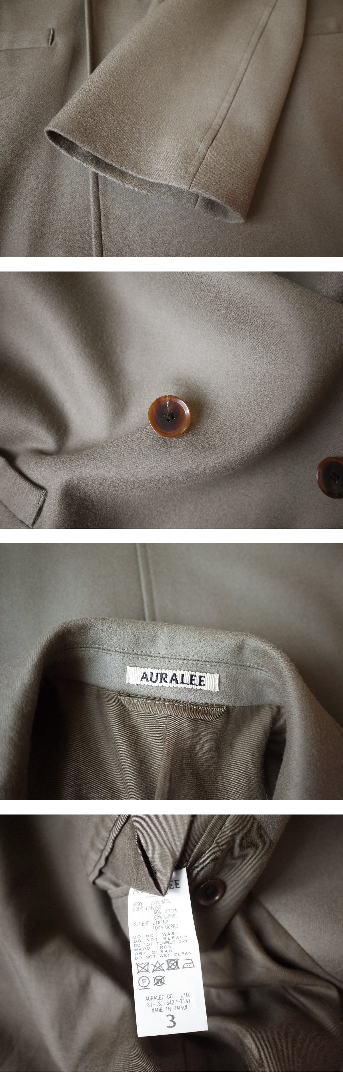 brand AURALEE made in japan price \154,000(参考上代) material wool 100% color camel beige サイズ 3 肩幅48(ドロップショルダー) 着丈91 裄丈84 身幅57(多少の誤差はご了承ください) 状態 使用感の少ないきれいなお品物です。かすかな薄汚れが見受けれられるのみでダメージは見受けられず末永くご使用頂ける状態です。 |
