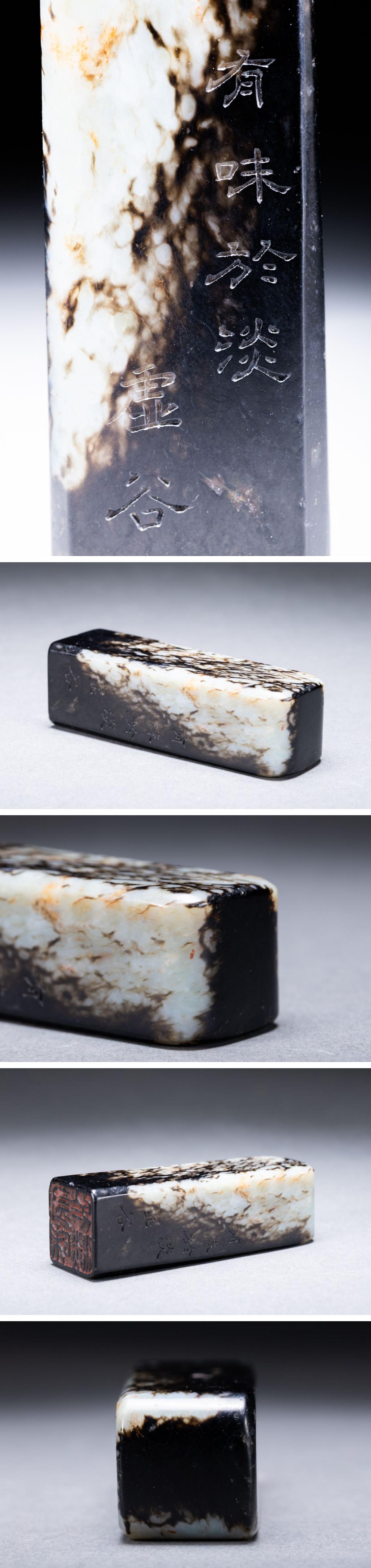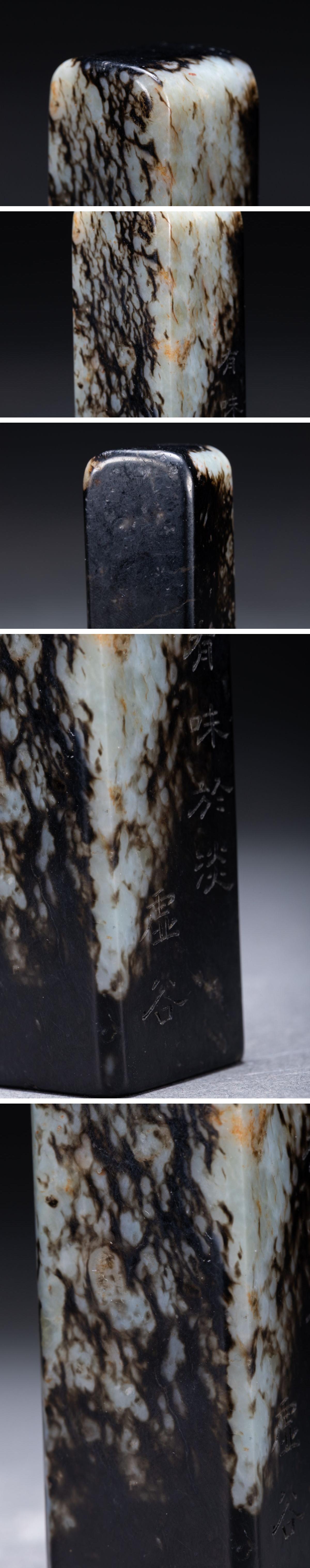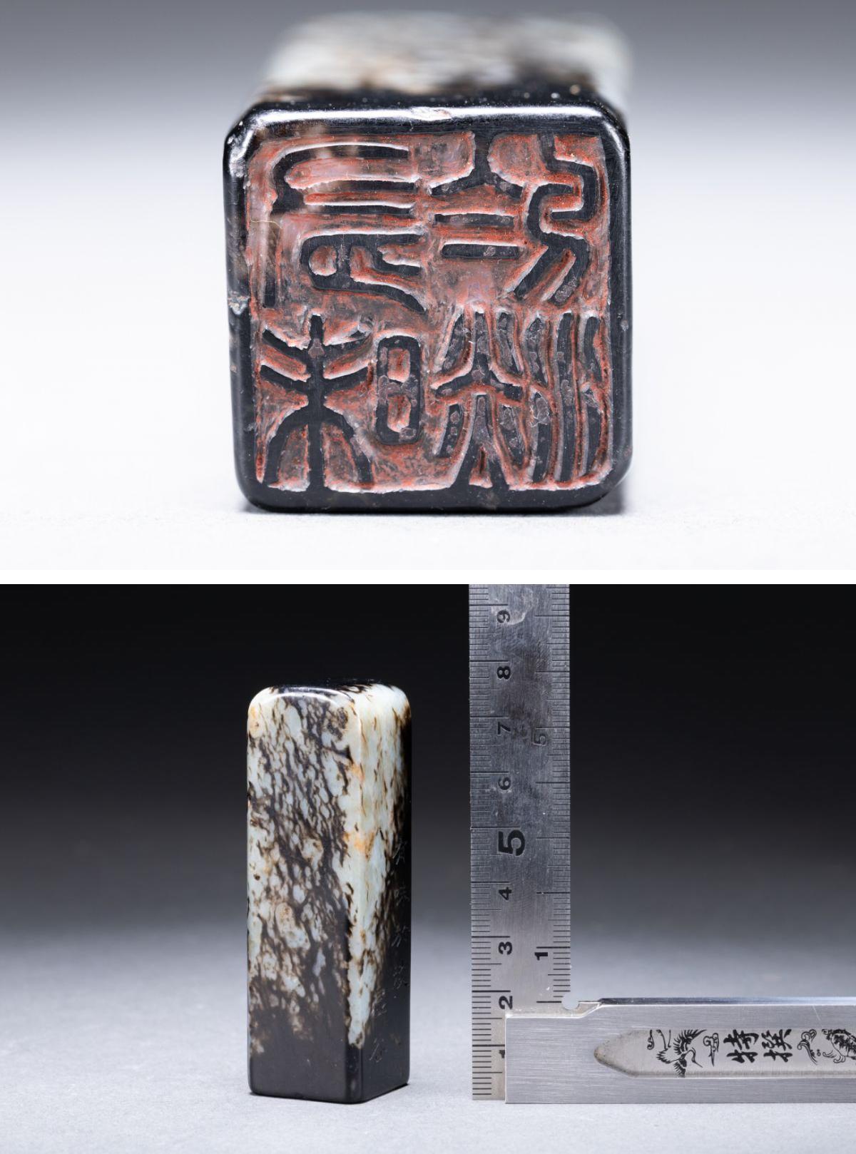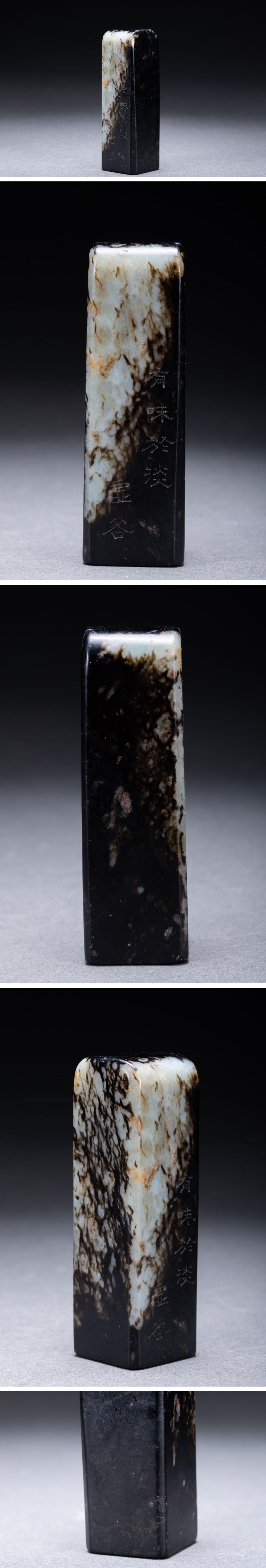 【清】関西某オークション購入 中国・清時代 和田玉 墨玉 漢詩紋印章 極細工 古置物 古擺件 中国古美術7L11-86S2