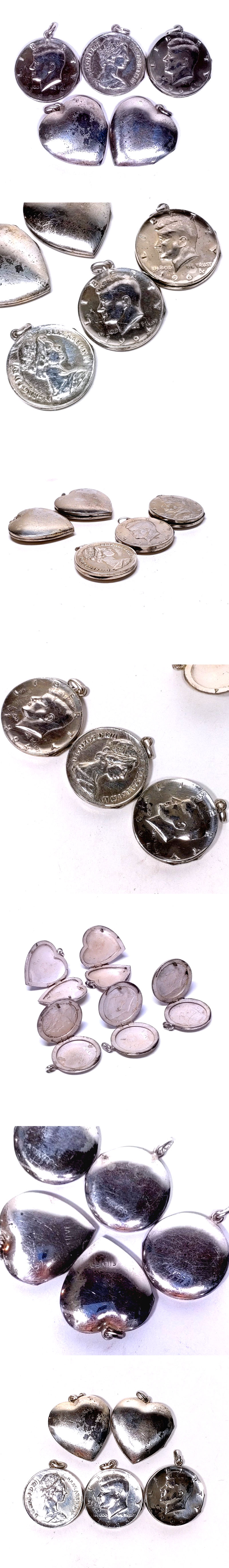 【侍】ヴィンテージ 1960~70s エリザベス女王1971 ケネディ1964 コイン シルバー ハートモチーフ ロケットペンダント 5点組 20#13 收藏