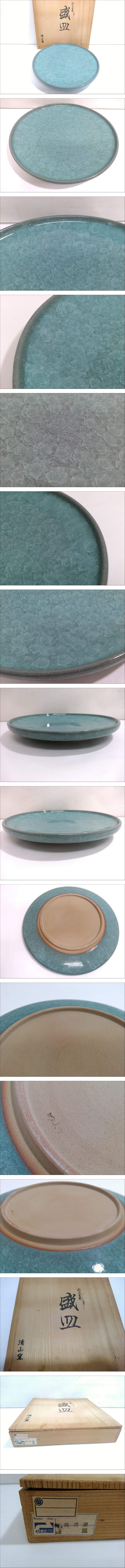 【うぶだし】清山窯 梅花青瓷 盛皿/直径約28cm/高さ約4cm/大皿/飾皿/丸皿/茶器/茶道具/在銘/和食器/共箱付き/06KO020205-8 收藏