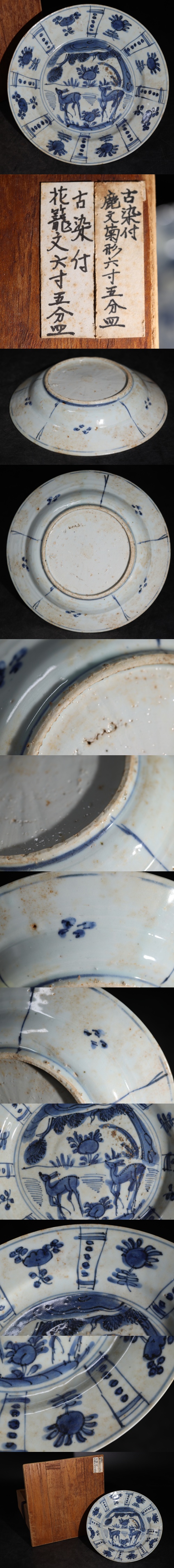 時代 古染付 鹿文 芙蓉手 皿 木箱付 / 中国美術 明代 頃 茶器 煎茶道具 煎茶飾 .G3688 收藏