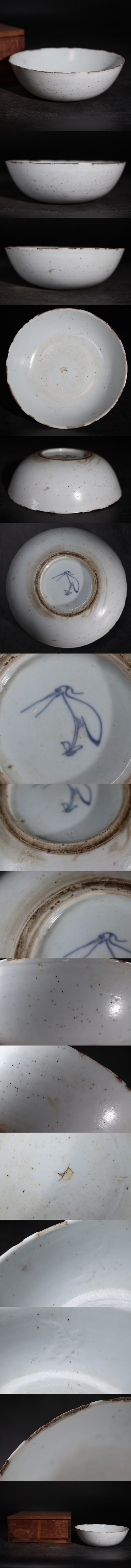 | 鷺 底款 古伊万里 白磁 鷺 陽刻 皿 木箱付 / 伊万里 有田 茶器 煎茶道具 煎茶飾 .G3707 |