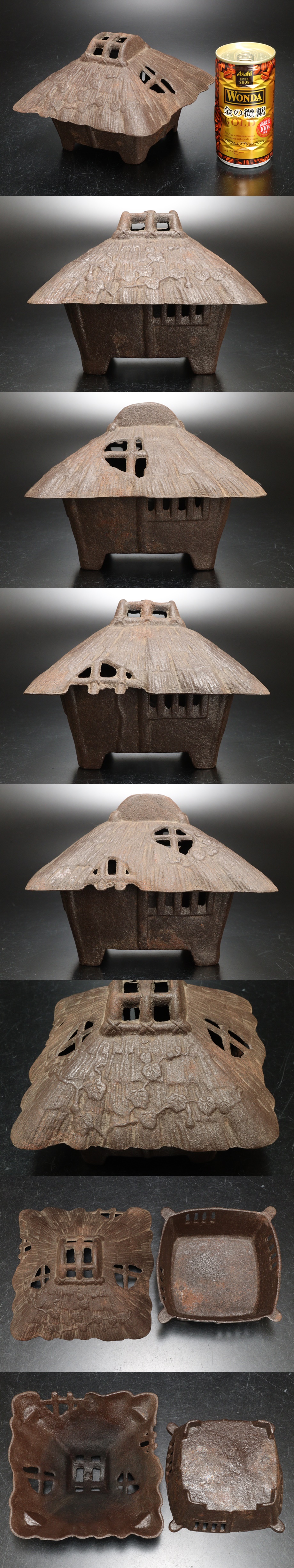 D 鉄製 茅葺屋根 葛屋型 香炉 重量939g