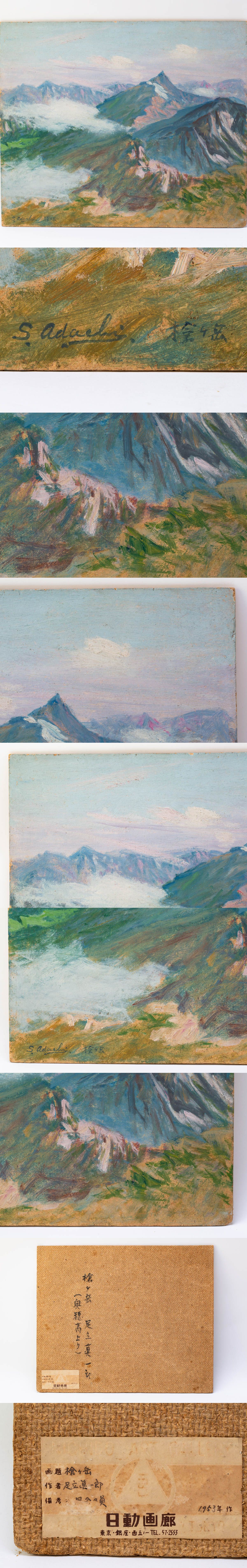 【真作】足立真一郎 「槍ヶ岳(奥穂高より)」 油彩画 風景画 F8号 板絵 日本山岳画協会 光風会名誉会員 #39667 收藏