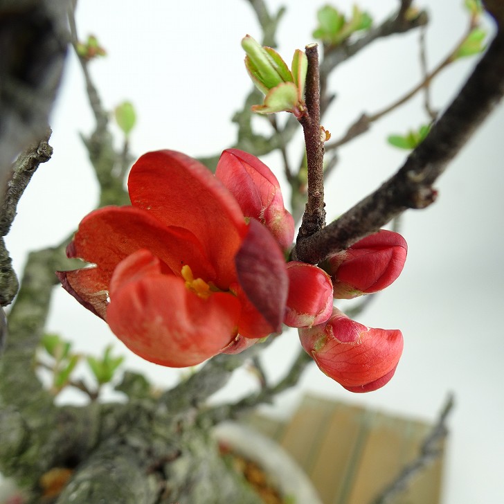盆栽 木瓜 樹高 約24cm ぼけ Chaenomeles speciosa ボケ 赤花 バラ科 ボケ属 落葉樹 鑑賞 観賞用 現品 收藏