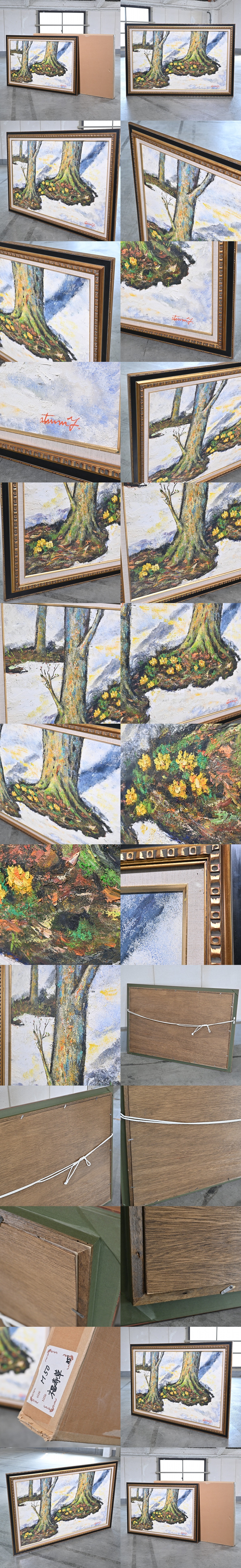油彩画「福寿草」壁掛け フレーム 雪解け 自然 アート リビング 寝室 ダイニング 玄関 事務所 オフィス ホテル ポスター インパスト 絵画 收藏