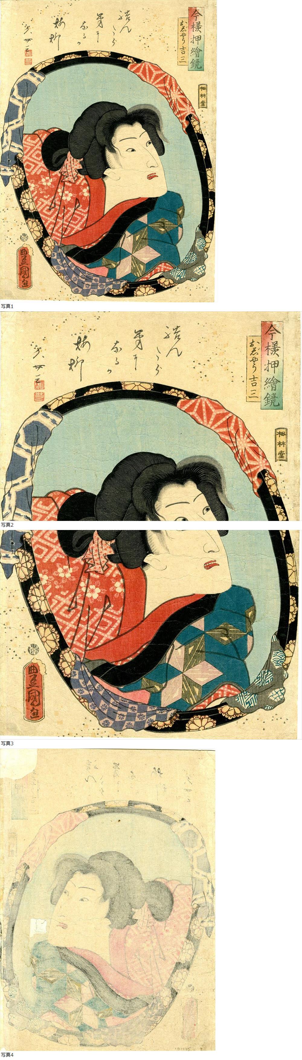| 豊国 真作「今様押絵鏡 おじやう吉三/大判錦絵1枚」 浮世絵 江戸 木版画 歌舞伎 役者 |