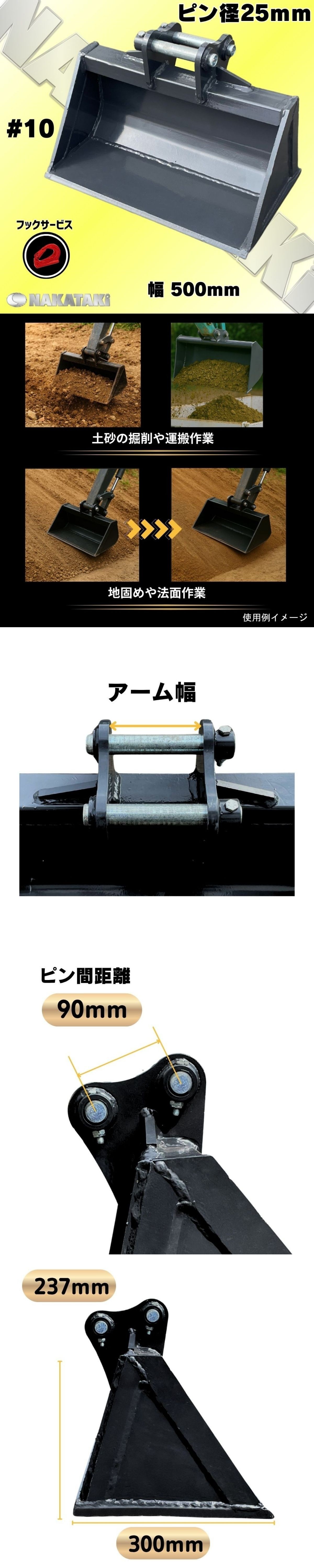 法面 バケット 【NAKATAKI#10】クボタ K005 KH007 KX005 RX141 U10 U-15-1 適合/ 幅500㎜ 重機 バックホウ ユンボ Z5 ¥#10 收藏