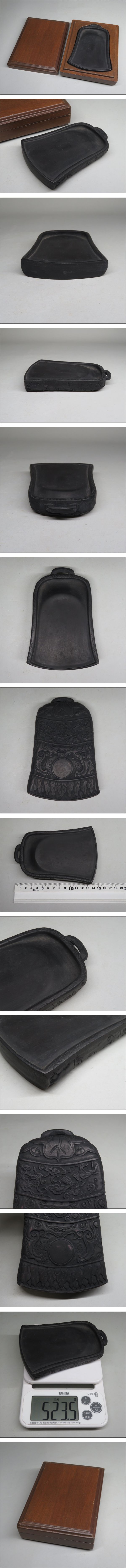 | 【東】清時代 釣鐘形硯 端渓硯 古硯 唐硯 唐木盒付 書道具 文房四宝 ◆中国美術 | ||||||