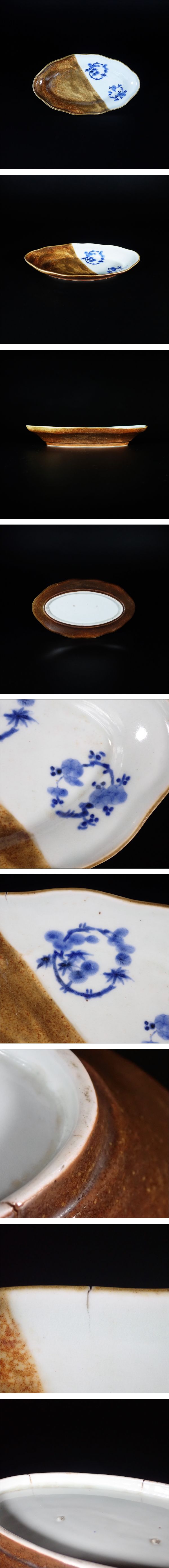 古伊万里 錆釉 染付 松竹梅文 変形 長皿 江戸後期 1780年頃 花文 掛け分け インテリア 飾り皿 (本物保証) B23 收藏