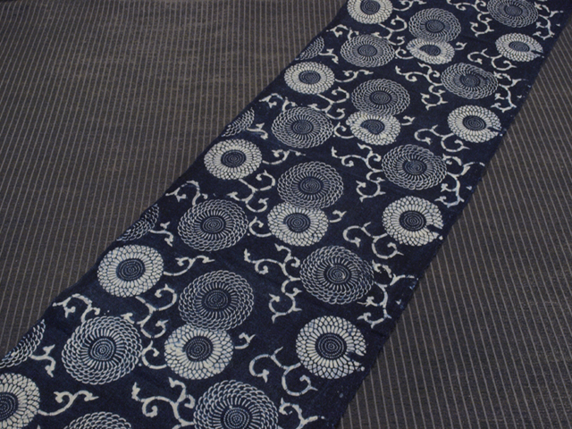 【両面染】菊唐草文 型染 綿 古布 はぎれ ハギレ 106×33 TAOB06005風楽 |