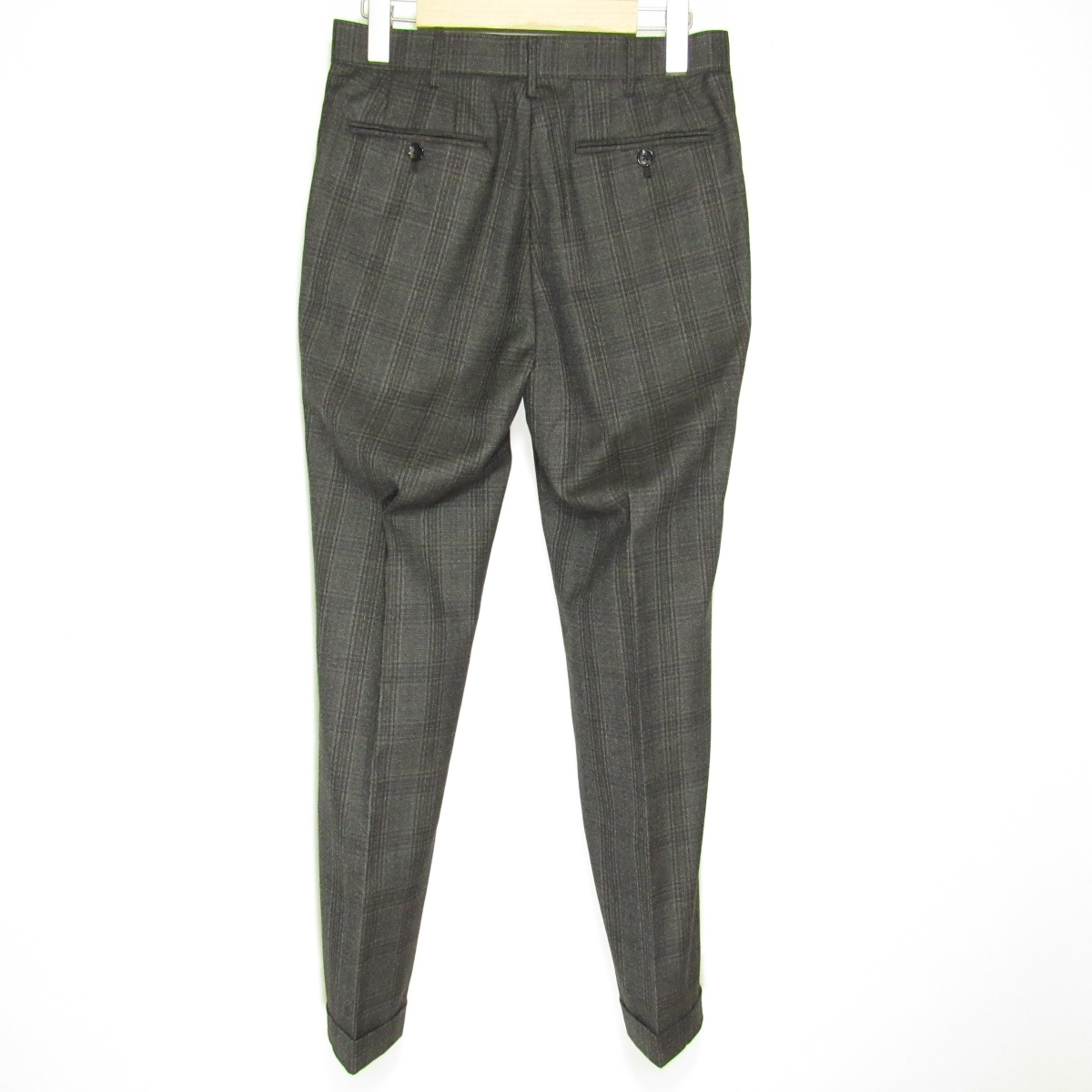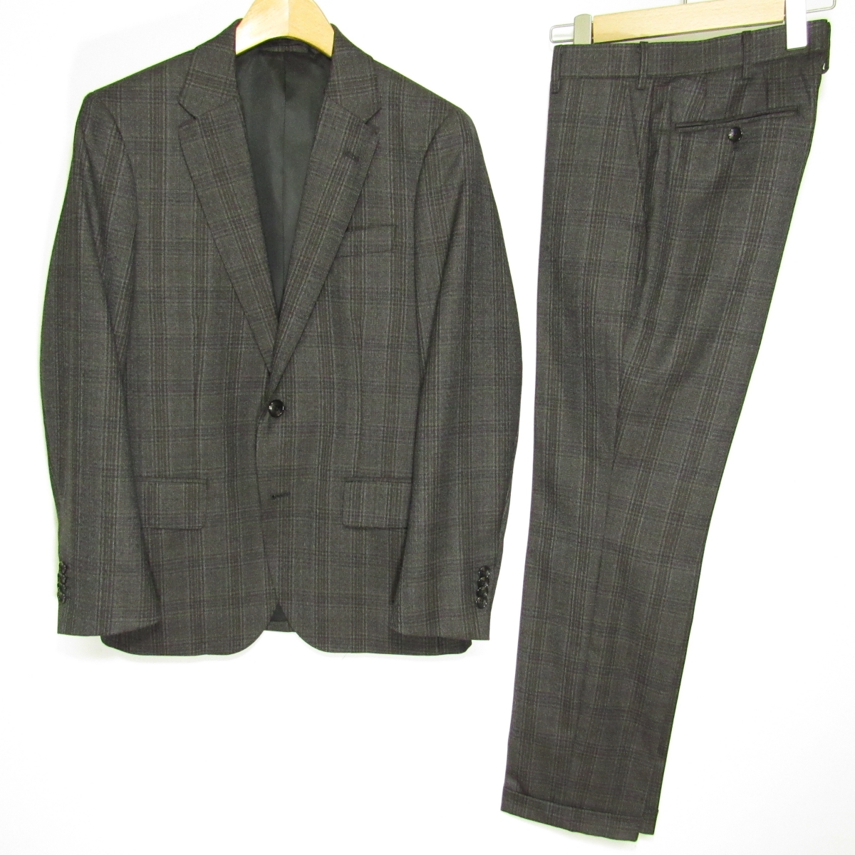 | 【ジャケット】表地-毛50% ポリエステル50% / 裏地-ポリエステル100% 【パンツ】表地-毛50% ポリエステル50% / 裏地-ポリエステル100% チャコール系チェック柄(ブラウンのラインも入っております) |