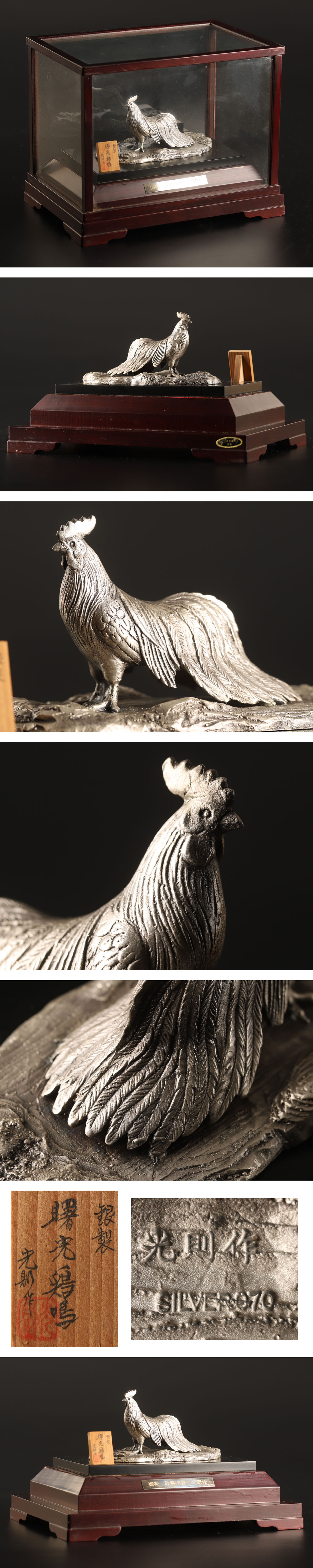 【流】光則作 SILVER970刻印 鶏置物 ケース付 LD558 收藏