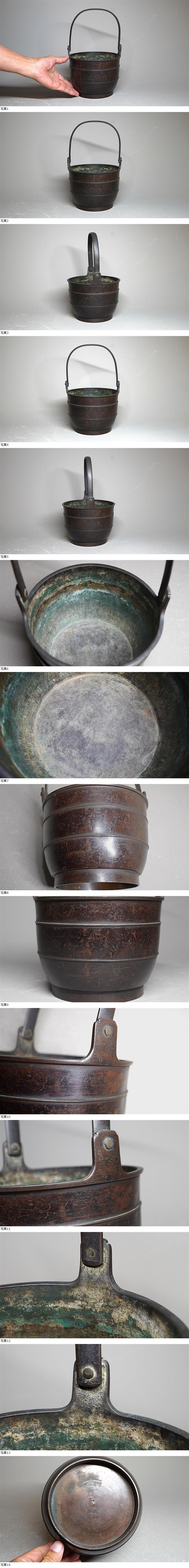 この桶は通常見かける閼伽桶よりは一回り大きな桶で、うぶい伝世の銅肌になっています。