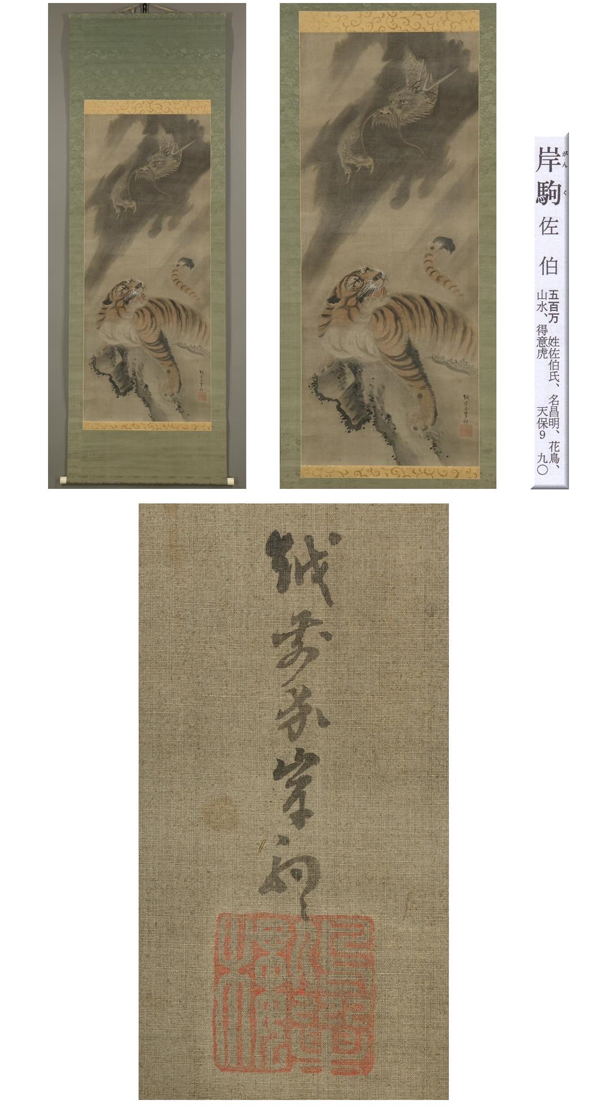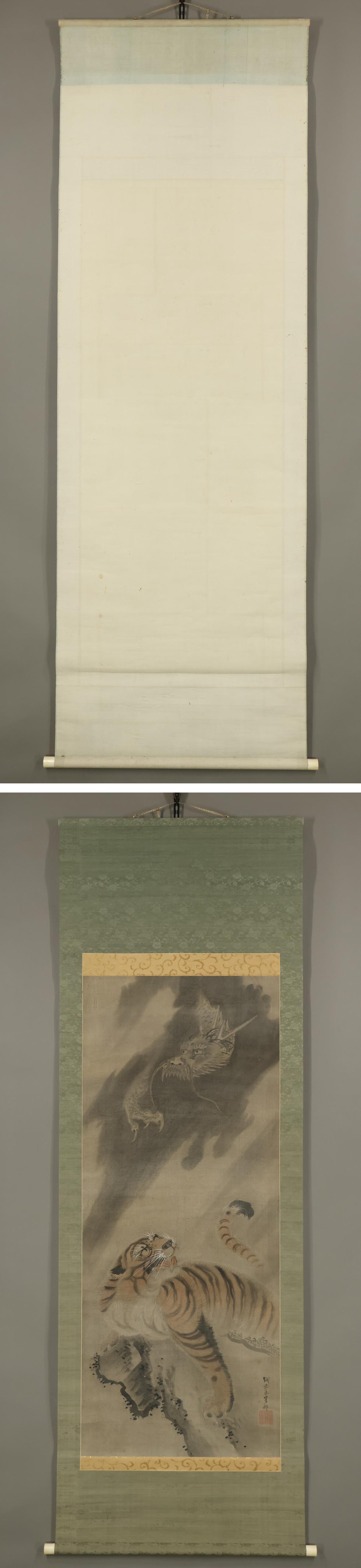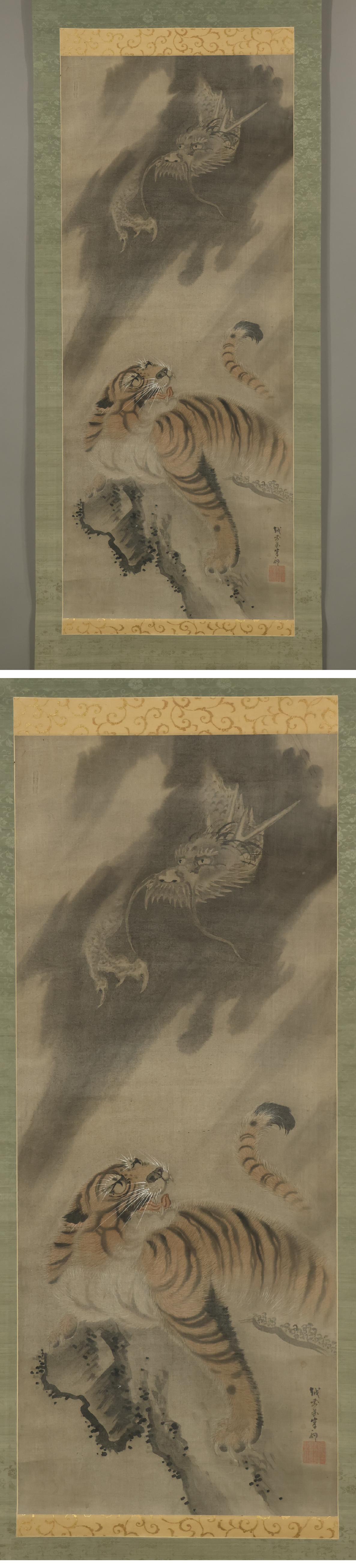 【模写】佐伯岸駒(佐伯岸矩)◆龍虎図◆日本画◆江戸期◆絹本◆掛軸◆x334 收藏