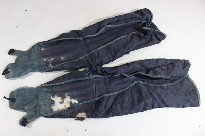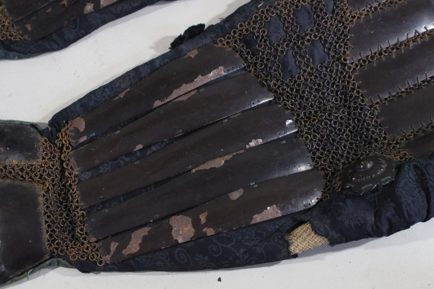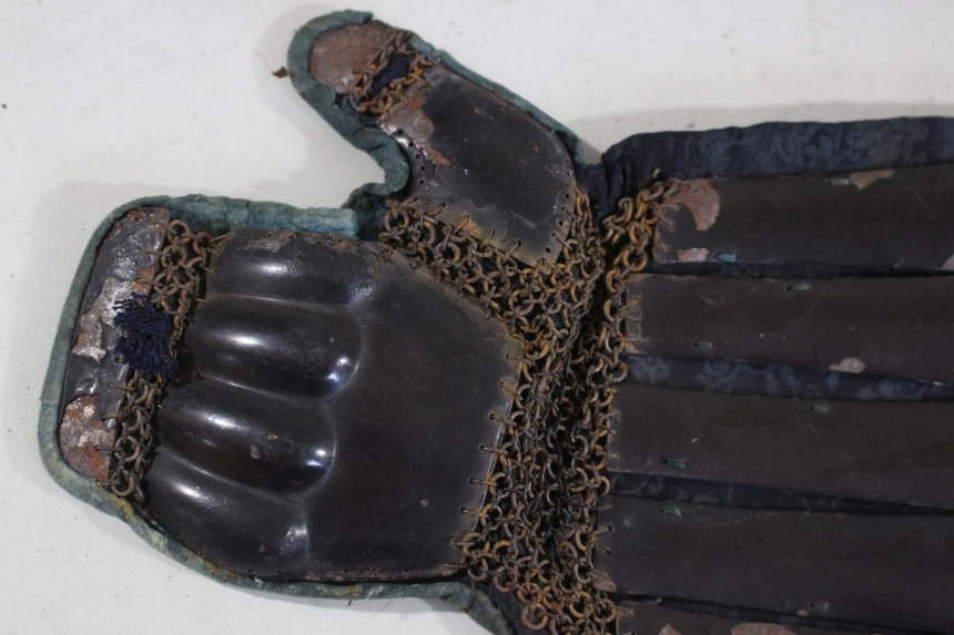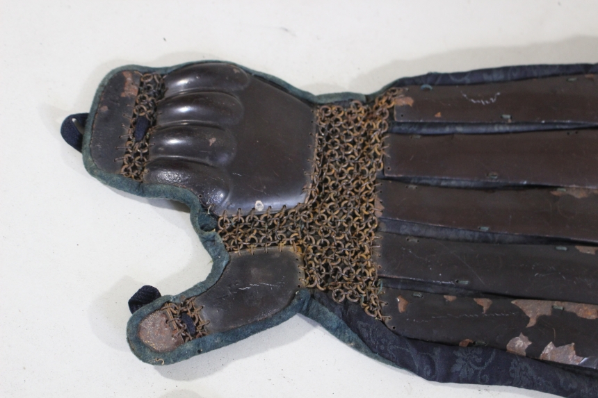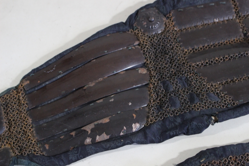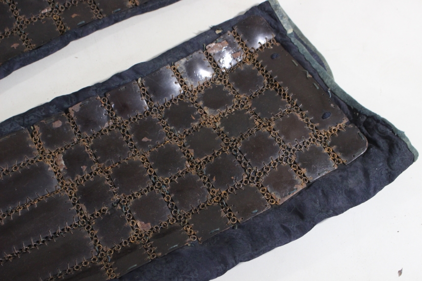 鉄黒漆塗三具 江戸 鉄、草摺:革、黒漆塗 籠手72×20cm 佩楯54×60cm 脛当34x35cm 2.9㎏ 甲冑/武具 收藏