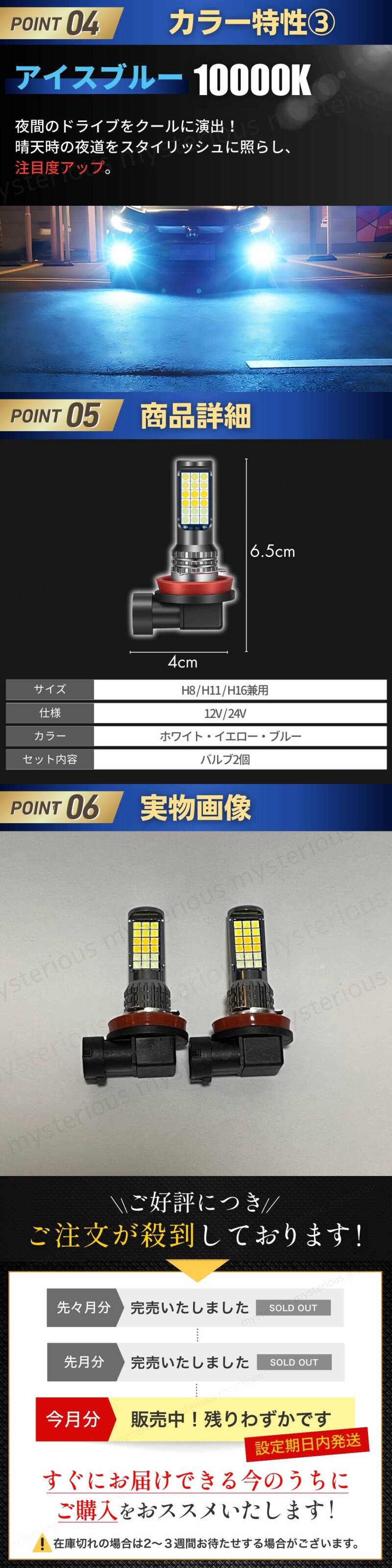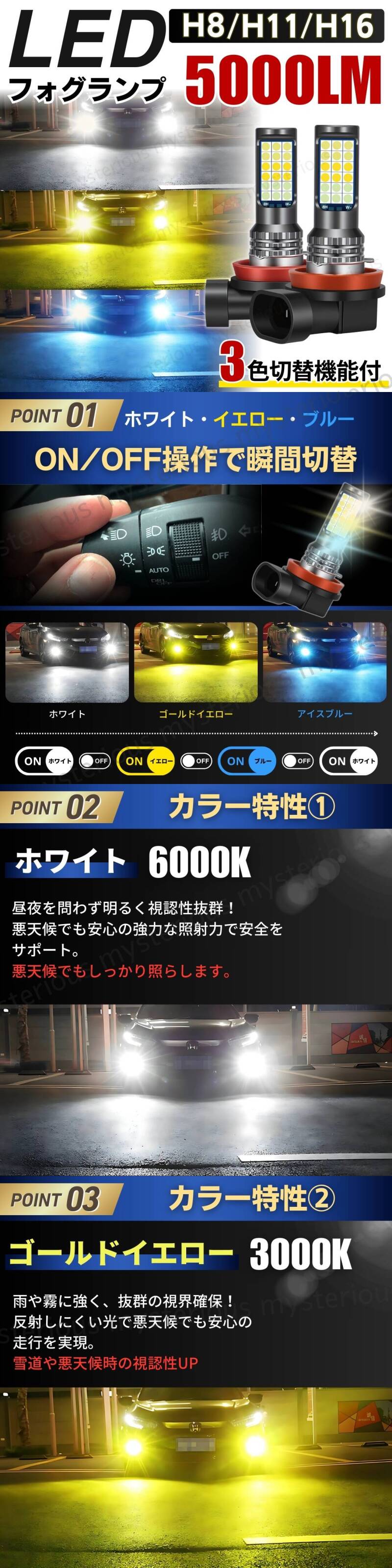 | 白/黄/青 H8/H11/H16兼用 3色切替フォグランプ / 2個セット |