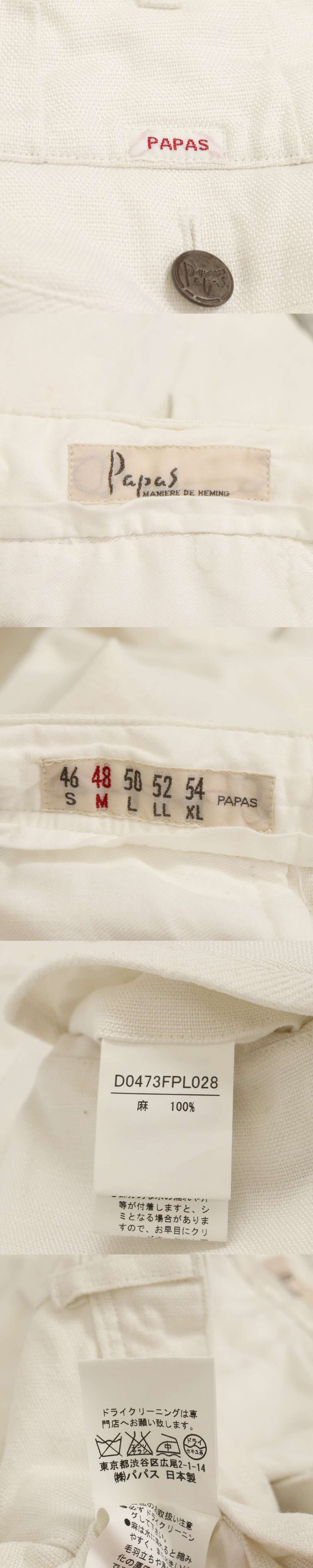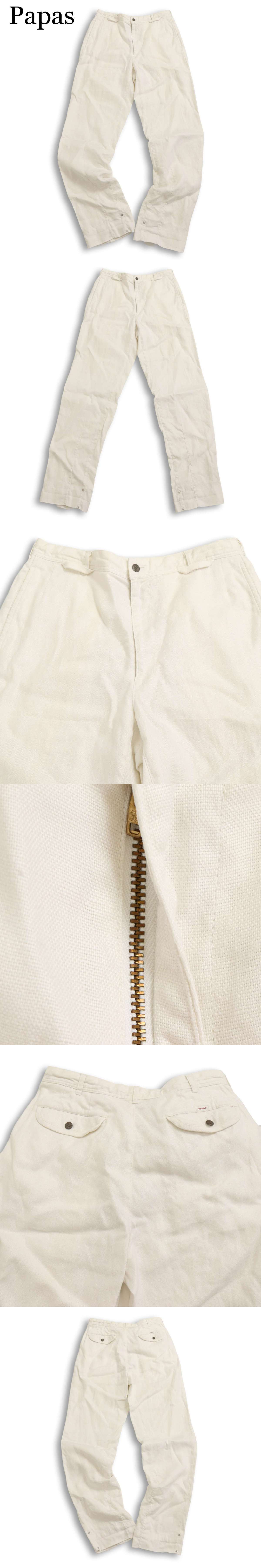 Papas パパス 春夏 麻 リネン100%★ テーパード スラックス パンツ Sz.M メンズ 白 日本製 收藏