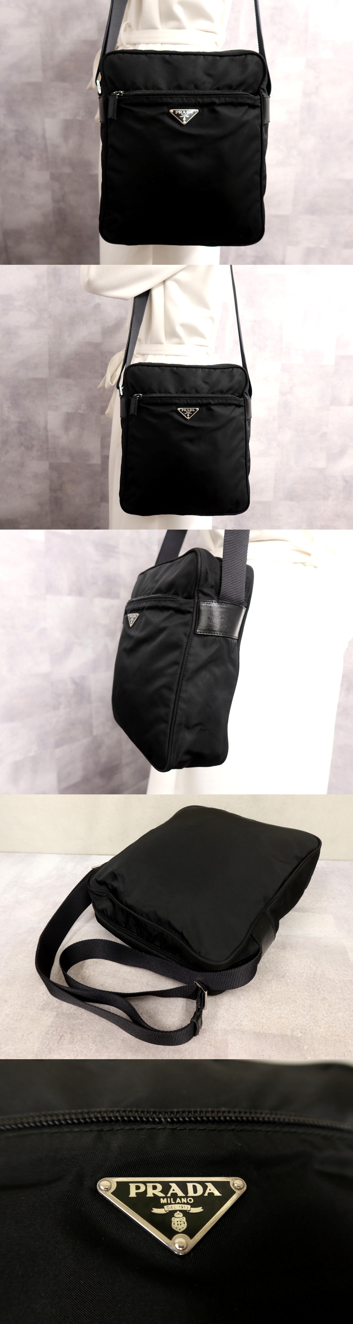 ●超美品●PRADA プラダ●三角ロゴプレート●ポコノ ナイロン カーフ レザー 本革●ショルダー バッグ●黒●SV金具●B5 書類 収納●Js65481 收藏