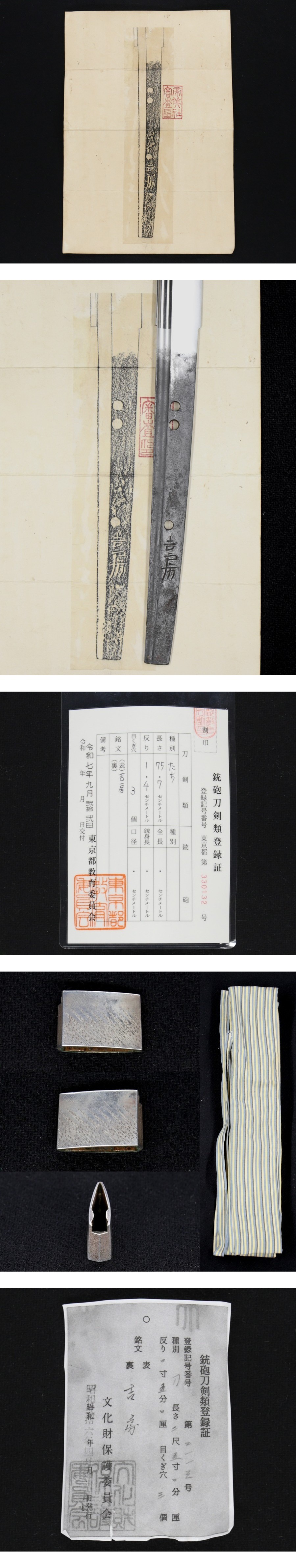 本阿弥光遜の鞘書があります。古い登録証、昭和26年大名登録のコピーがあります。登録都道府県が