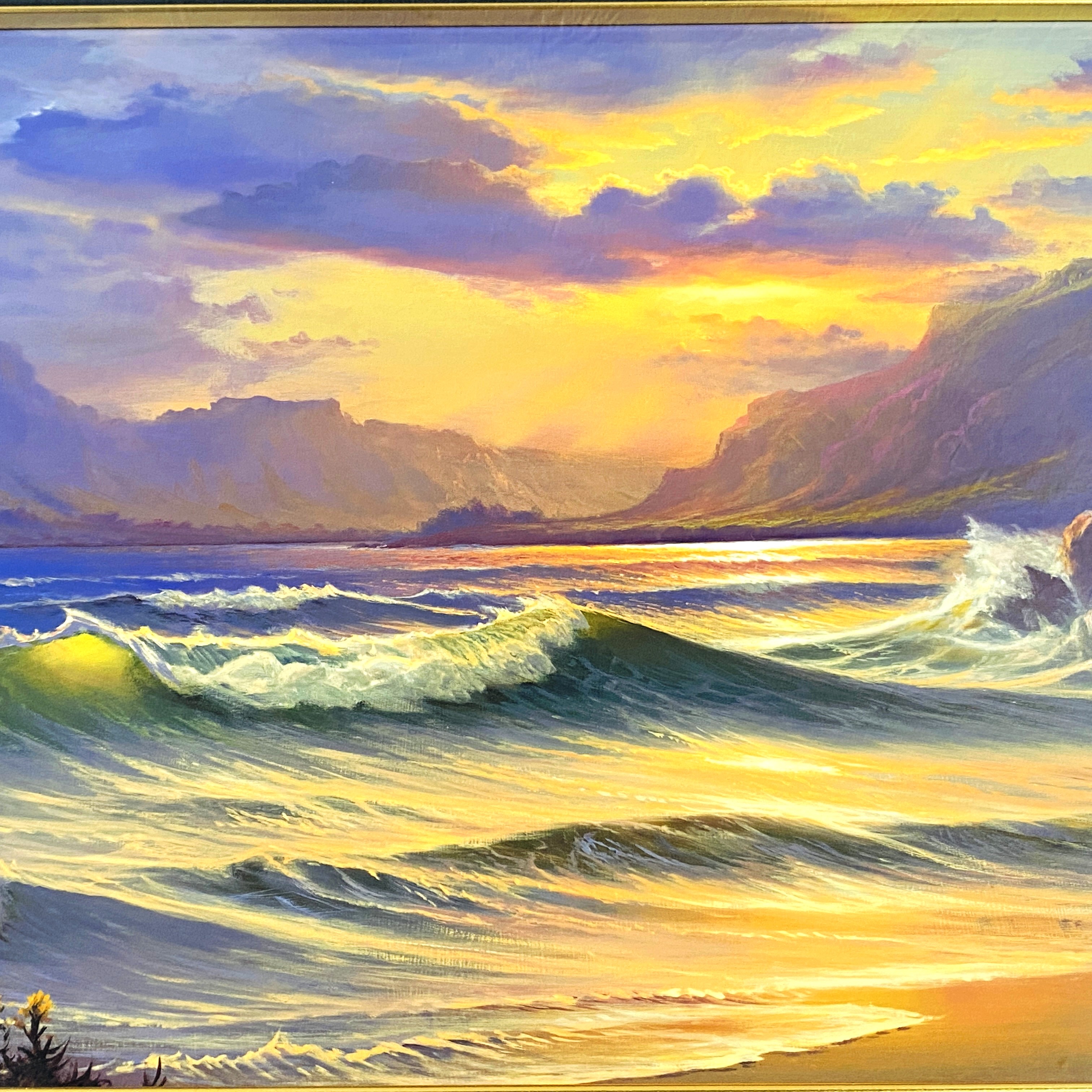 E1EY0605 幻想的海景アート デシャゾー『セレニティⅢ』額装版画 ミクストメディア 限定44/200 直筆サイン入 インテリア絵画 証明書付 收藏