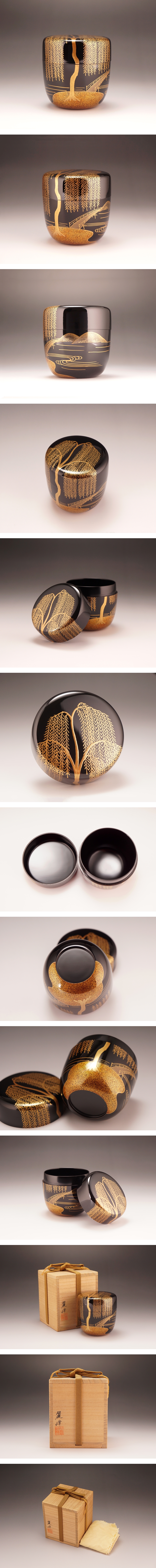 【asiya391】茶道具 蒔絵師『佐々木麗峰』蒔絵 柳橋遠山 木地 棗 ナツメ 共箱◆茶器 木製 金蒔絵 大棗 蔵出し 古美術 即決 送料無料 收藏