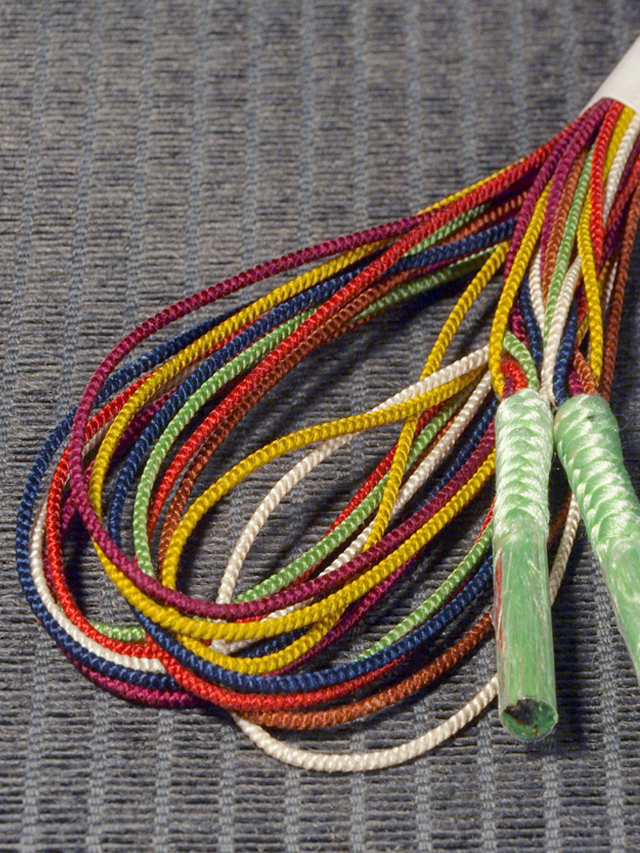 萌黄(もえぎ)色、濃紅(こいくれない)色、弁柄(べんがら)色、茶色、紺色、芥子(からし)色、白色の細丸組の先端部に薄萌黄(うすもえぎ)色の角組が組みあらわされた変わり組の帯締めです。夏帯締めです。 和色の豊かな色彩が小粋な風情を醸しています。途中で束ねられメッシュ状に組み合わされています。 ユーズド品としてはいますが、使用感はあまり感じられません。目につくしみやよごれ、褪色などのダメージも見あたらず、ほぼ新品同様にきれいな状態です。 |