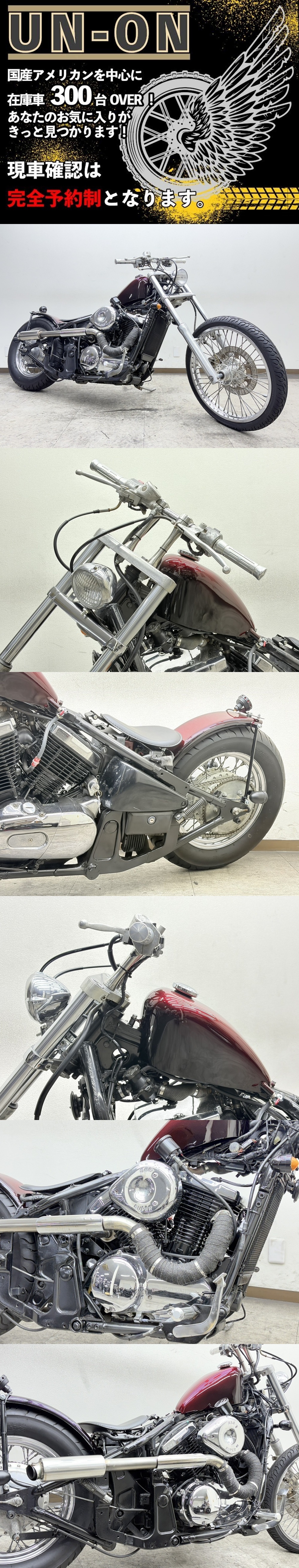 ~~~~~~ ご注意ください ご注意ください ご注意ください ご注意ください ~~~~~~ 掲載車両は、すべて当社保管倉庫において、直接販売・卸販売をしています。 落札いただいたとしても、商談中の場合やバイクショップ様・業者様が引き上げ直後の場合もあります。 また、落札されても連絡が取れない場合や、ご入金の確認が取れない場合は、他のお客様を優先と致します。 <<<ご連絡先>>>現車確認、大歓迎です! *完全予約制です。必ず事前にご連絡ください* !!! 入札前には、必ずメールか電話にてご連絡ください !!! 電話:045-719-5355 当社HP https://sites.google.com/view/un-on/home メール:unonbike@gmail.com お気軽にご連絡ください お問い合わせの際は バルカン400 管理番号 614 でお願いします! セルにてエンジン始動、アイドリング、吹け上がりともに良好です。 取り扱い車両はすべて中古車・現状引き渡しとなります。 ご入札前には、出来る限り「現車確認」もしくは「お電話」「メール」にてご連絡をお願いします。 車輌状態を説明させていただきます。 【社外パーツについて】 本車両に付属している社外パーツにつきましては、出品前に動作確認は行っておりますが、中古品のため万が一不具合等があった場合でも 保証は致しかねますので予めご了承の上、ご検討くださいますようお願い致します。 電話番号:045-719-5355 メール:unonbike@gmail.com 残念ながら、事前のご連絡がない場合、「誤入札」「誤落札」が多い為、入札・落札を取り消す事もありますので、 予めご了承ください。 >>>>>>>>>>>>>>>>>>>>>>>>>>>>>>>>>>>>>>>>>>>> 当店は業者販売・現状引き渡し専門店になります。 一般のお客様にも、業者価格にて販売しています。 基本的には整備料も頂かず現状販売の形となりますので、ご購入後は「点検・整備・メンテナンス」を行ってからご使用ください。 現車確認・業者販売 大歓迎!! 国産アメリカン中心に 常時 300台前後の車両在庫があります! 現車確認、大歓迎です。 車両引き渡しについては、『自賠責保険加入』『予備車検取得』『登録・届出代行(ナンバー登録)』を完了してからになります。 『登録・届出代行費用』は、手数料 30000円(税別)となります。 『予備車検取得』については、エンジンサイズや搭載マフラー等によって変わってきますので、まずはお問い合わせください。 走行距離は、メーター表示距離となります。 配送につきましては、当社にて契約している陸送会社様 3社の中から最安を選択して手配いたします。 配送費用については、納車先住所によって異なりますので、お問い合わせください。 デポ持ち込みに関しては7000円(税別)で行います。 なお、落札後のキャンセルは受け付けておりません。ご不明点等がありましたら、必ず入札・落札前にお問い合わせください。 落札後のキャンセルについては、即決価格の10%のキャンセル費用が発生いたしますので、予めご了承ください。 <<<<<<<<<<<<<<<<<<<<<<<<<<<<<<<<<<<<<<<<<<<< 電話 : 045-719-5355 メール:unonbike@gmail.com 現車確認は業者オークションで不在時が多い為 完全予約制です ~~~~~~~~~~~~~~~~~~~~~~~~~~~~~~~~~~~~~~~~~~~~~~~~ 取り扱い車両はすべて中古車・現状引き渡しとなります。 ご入札前には、出来る限り「現車確認」もしくは「お電話」「メール」にてご連絡をお願いします。 車輌状態を説明させていただきます。 電話番号:045-719-5355 メール:unonbike@gmail.com 残念ながら、事前のご連絡がない場合、「誤入札」「誤落札」が多い為、入札・落札を取り消す事もありますので、 予めご了承ください。 >>>>>>>>>>>>>>>>>>>>>>>>>>>>>>>>>>>>>>>>>>>> 当店は業者販売・現状引き渡し専門店になります。 一般のお客様にも、業者価格にて販売しています。 基本的には整備料も頂かず現状販売の形となりますので、ご購入後は「点検・整備・メンテナンス」を行ってからご使用ください。 車両引き渡しについては、『自賠責保険加入』『予備車検取得』『登録・届出代行(ナンバー登録)』を完了してからになります。 『登録・届出代行費用』は、手数料 30000円(税別)となります。 『予備車検取得』については、エンジンサイズや搭載マフラー等によって変わってきますので、まずはお問い合わせください。 走行距離は、メーター表示距離となります。 配送につきましては、当社にて契約している陸送会社様 3社の中から最安を選択して手配いたします。 配送費用については、納車先住所によって異なりますので、お問い合わせください。 デポ持ち込みに関しては7000円(税別)で行います。 なお、落札後のキャンセルは受け付けておりません。ご不明点等がありましたら、必ず入札・落札前にお問い合わせください。 落札後のキャンセルについては、即決価格の10%のキャンセル費用が発生いたしますので、予めご了承ください。 <<<<<<<<<<<<<<<<<<<<<<<<<<<<<<<<<<<<<<<<<<<< |